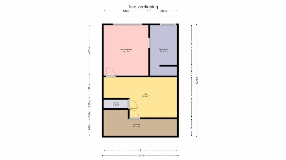 Au premier étage, vous trouverez un hall avec toilettes, un espace de rangement, une chambre et une salle de bains avec baignoire et douche.