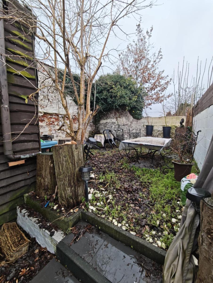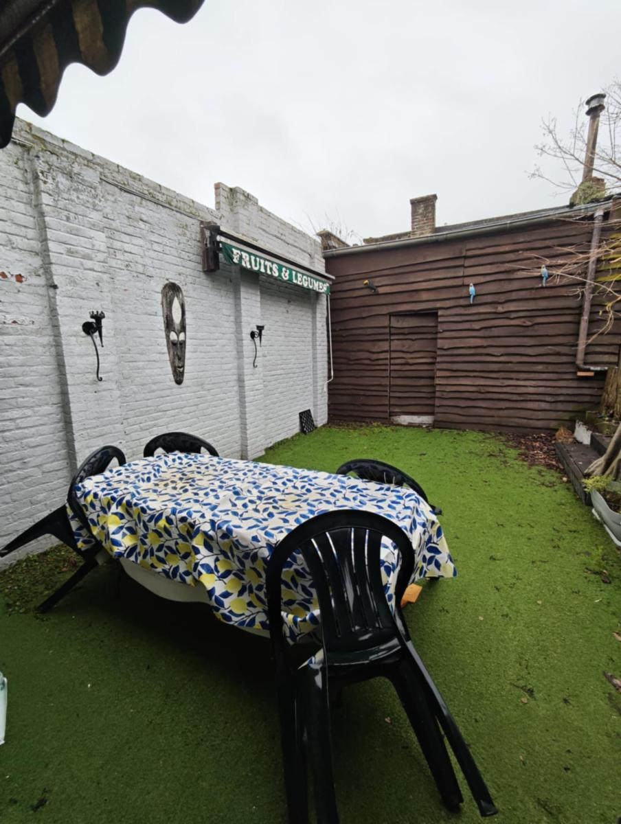 Extérieur : une cour, un petit jardin et un abri de jardin