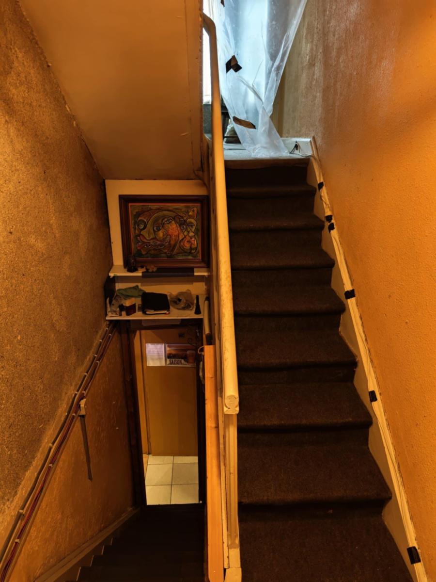 1er étage : trois chambres (une grande à l'avant ainsi que deux petites), une salle de bains (baignoire - WC - lavabo - chauffe-eau électrique)