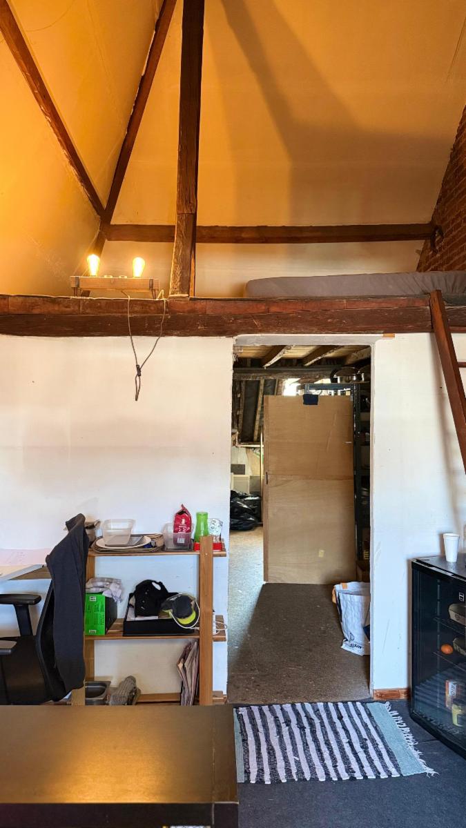 Au 1er étage : réserve et bureau.