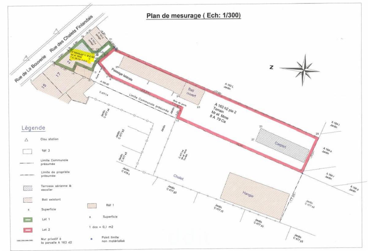 Un terrain sur lequel ont été érigés deux studios, sis rue des Chalets Finlandais, précadastré sous section A numéro 0163L2P0000, pour une contenance de 8a 79ca, suivant mesurage. (LOT 2 - liseré ROSE au plan de mesurage du 25 août 2023).