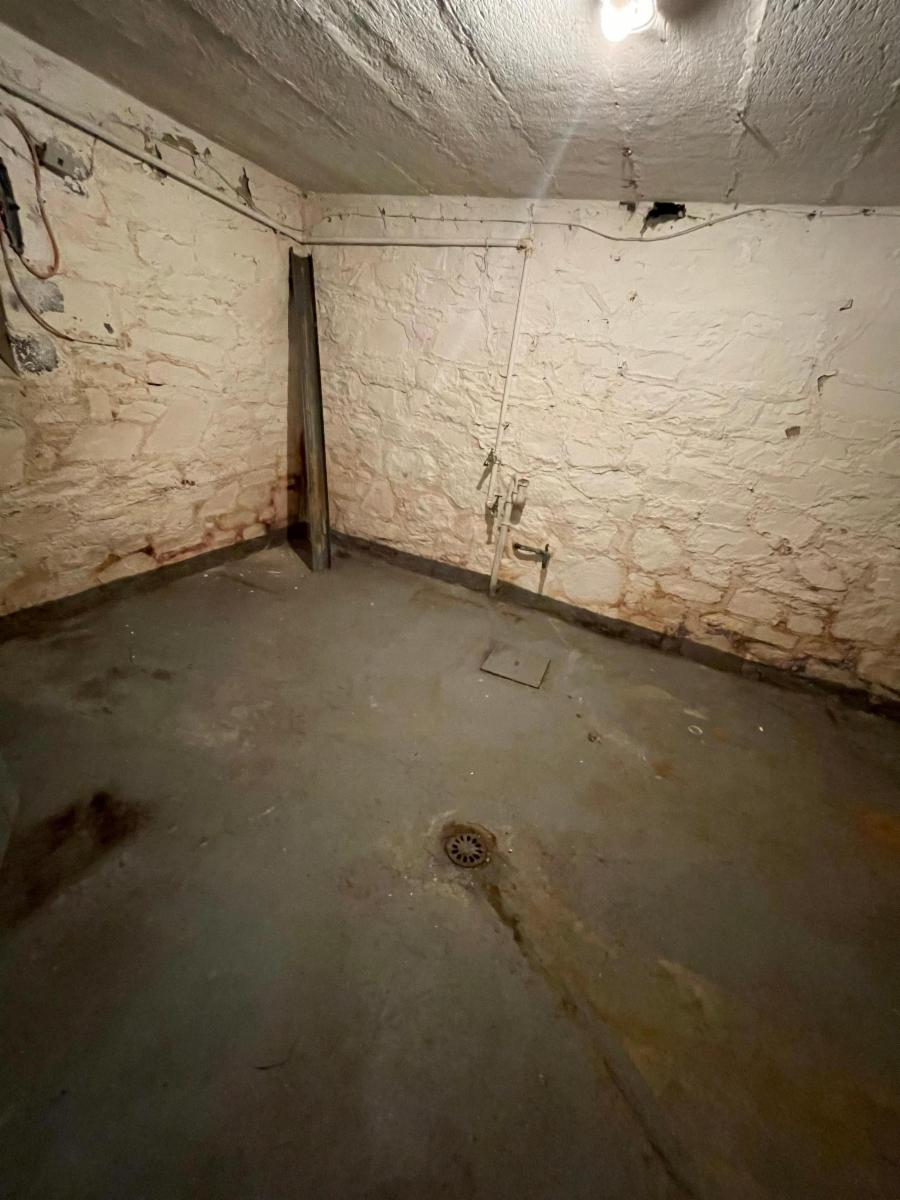 *Premier étage : palier, chambre avant, chambre arrière et salle de bains à rénover complètement avec wc, baignoire et lavabo.