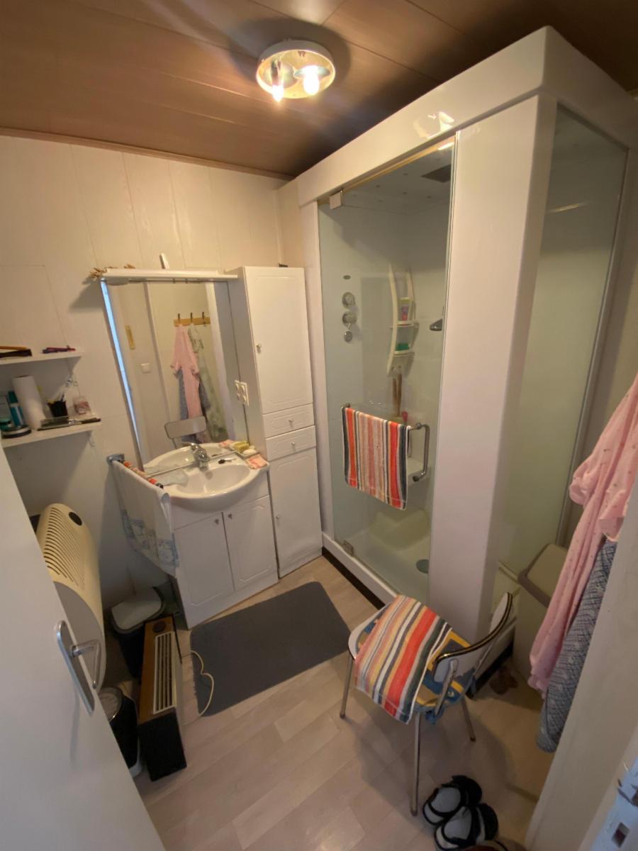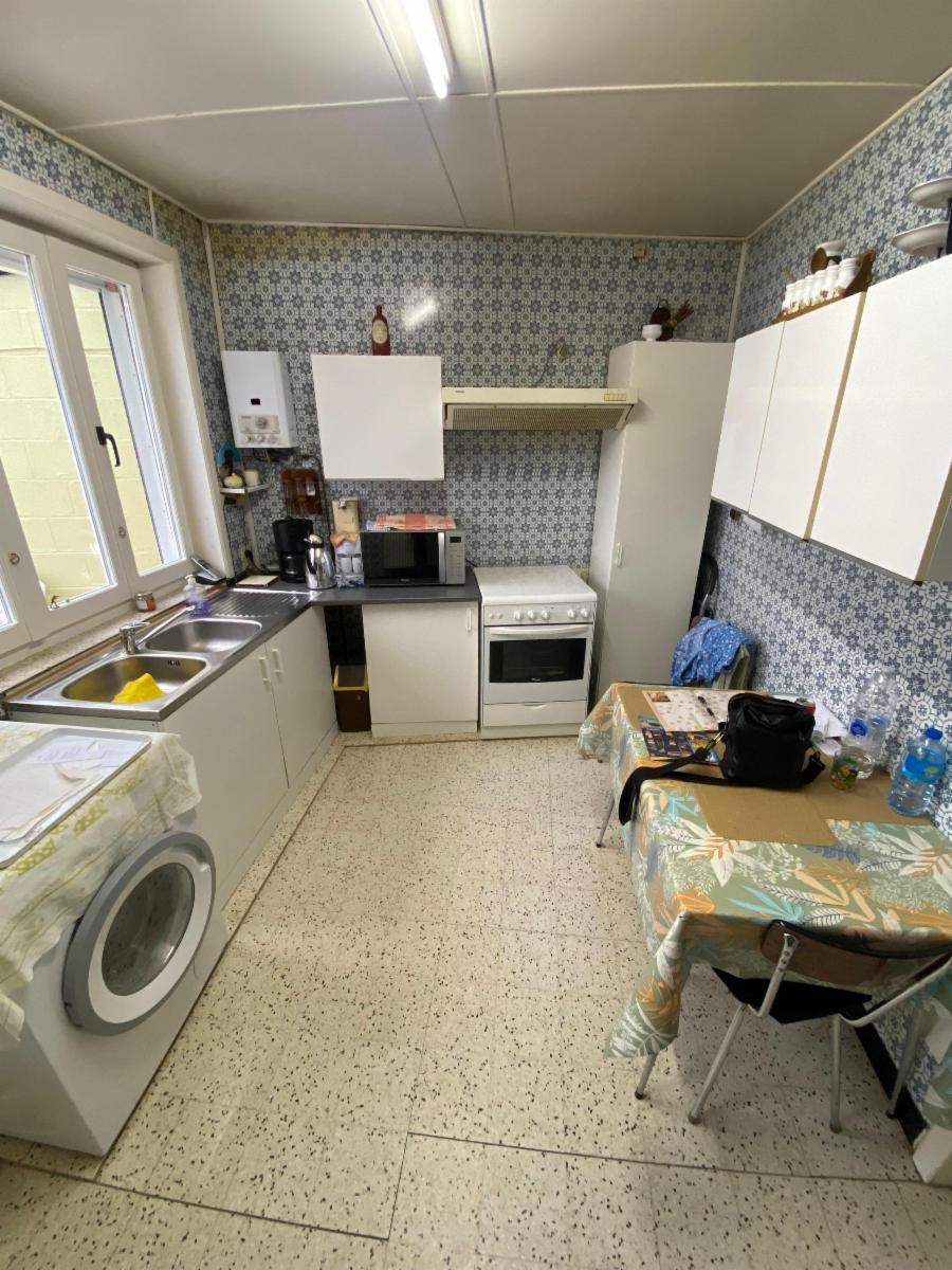 RDC : un salon, salle à manger, cuisine non équipée, 3 chambres, salle de douche (avec lavabo) et un WC séparé.