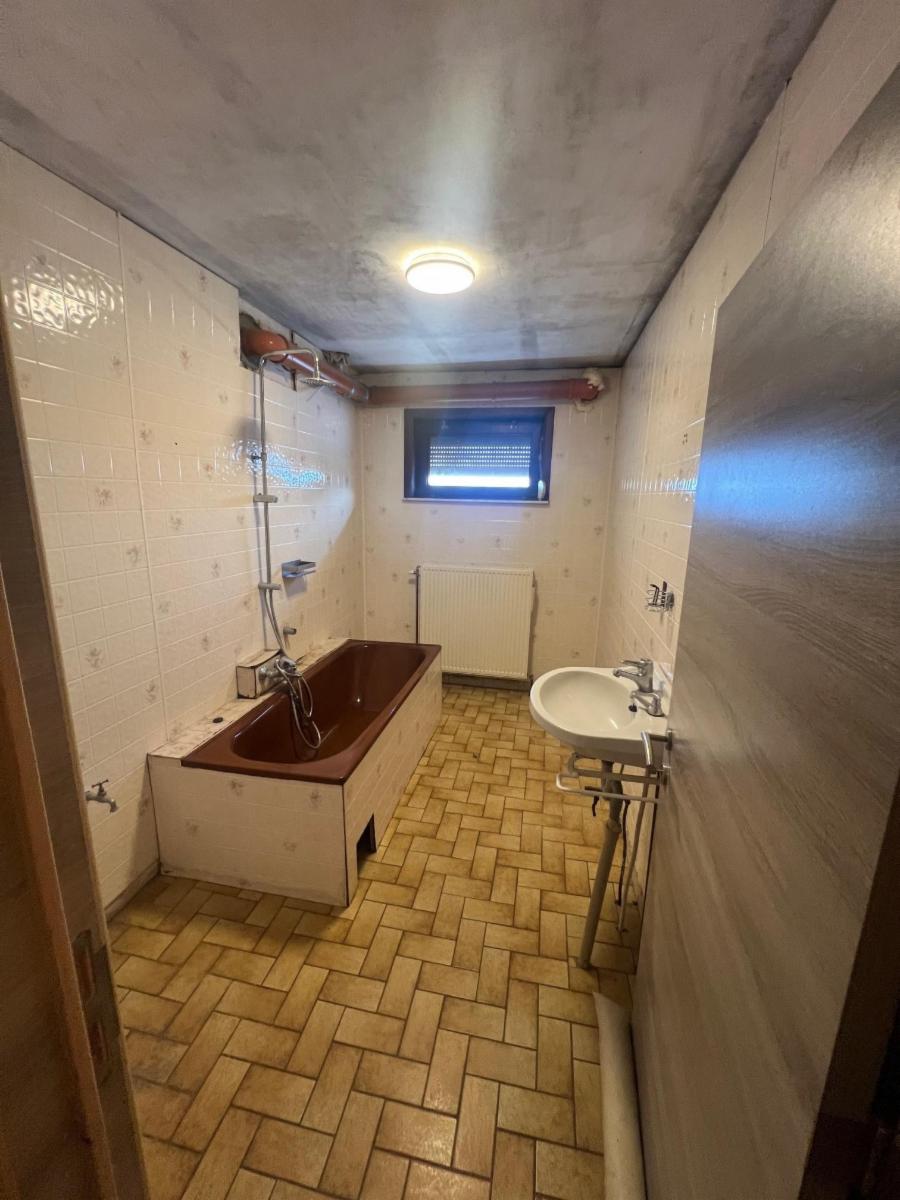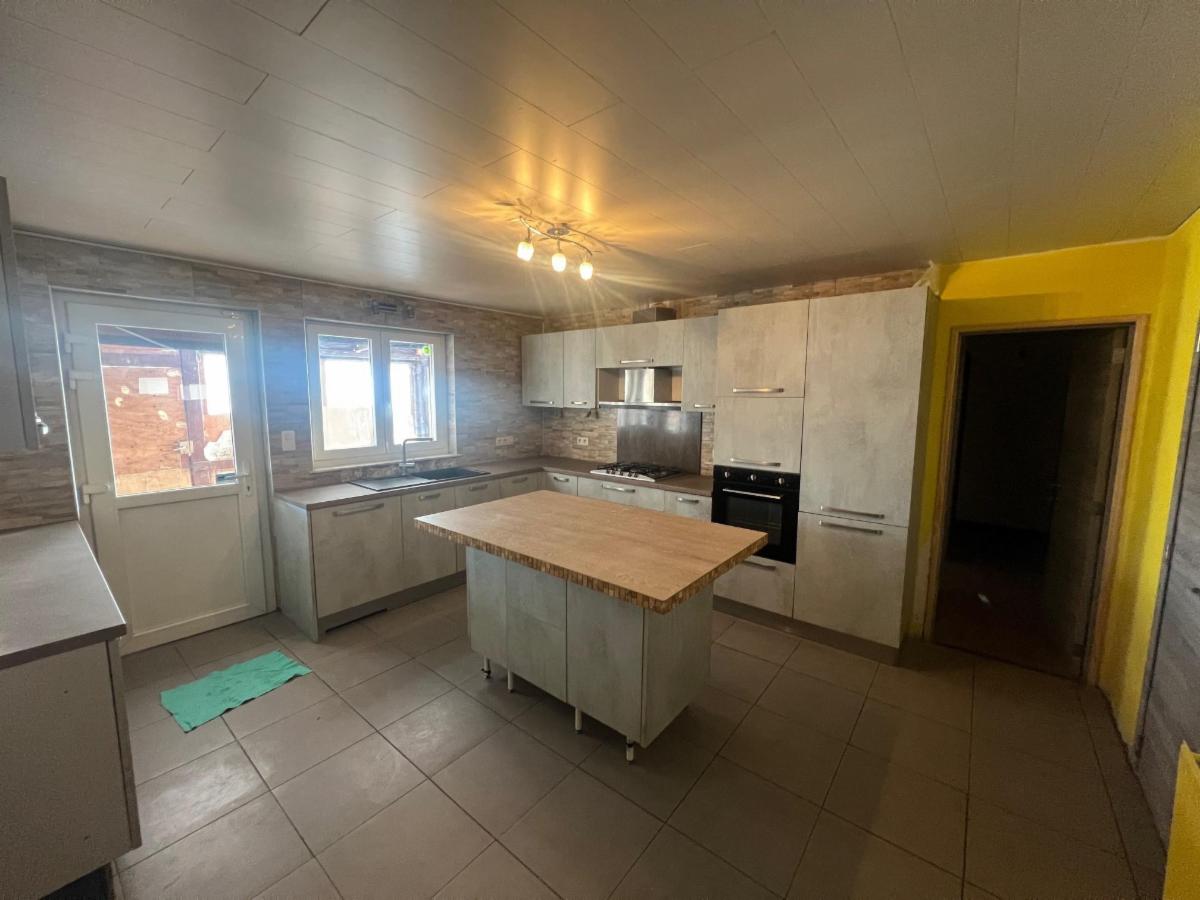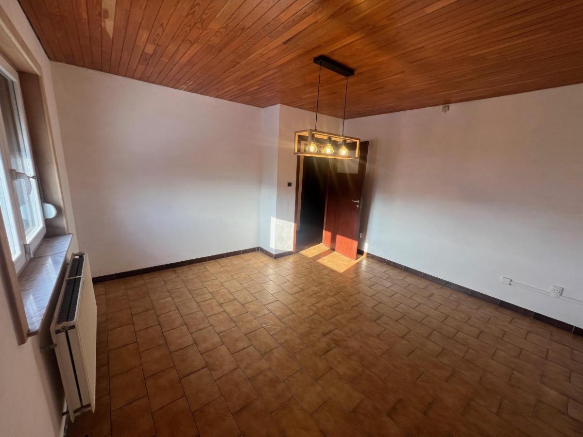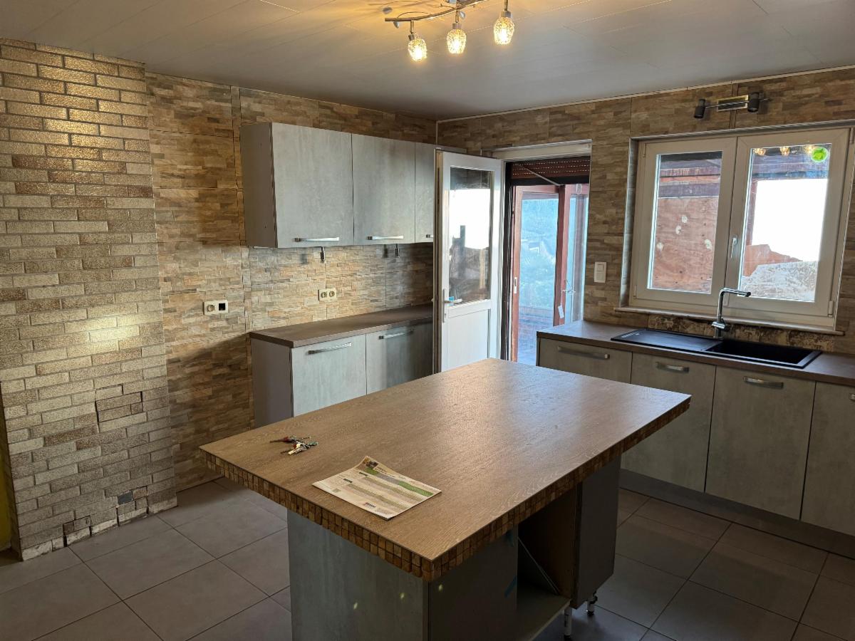 RDC: hall, 1 living, 1 cuisine semi-équipée avec ilot central, wc, 3 chambres,1 salle de bains à rénover et 1 véranda