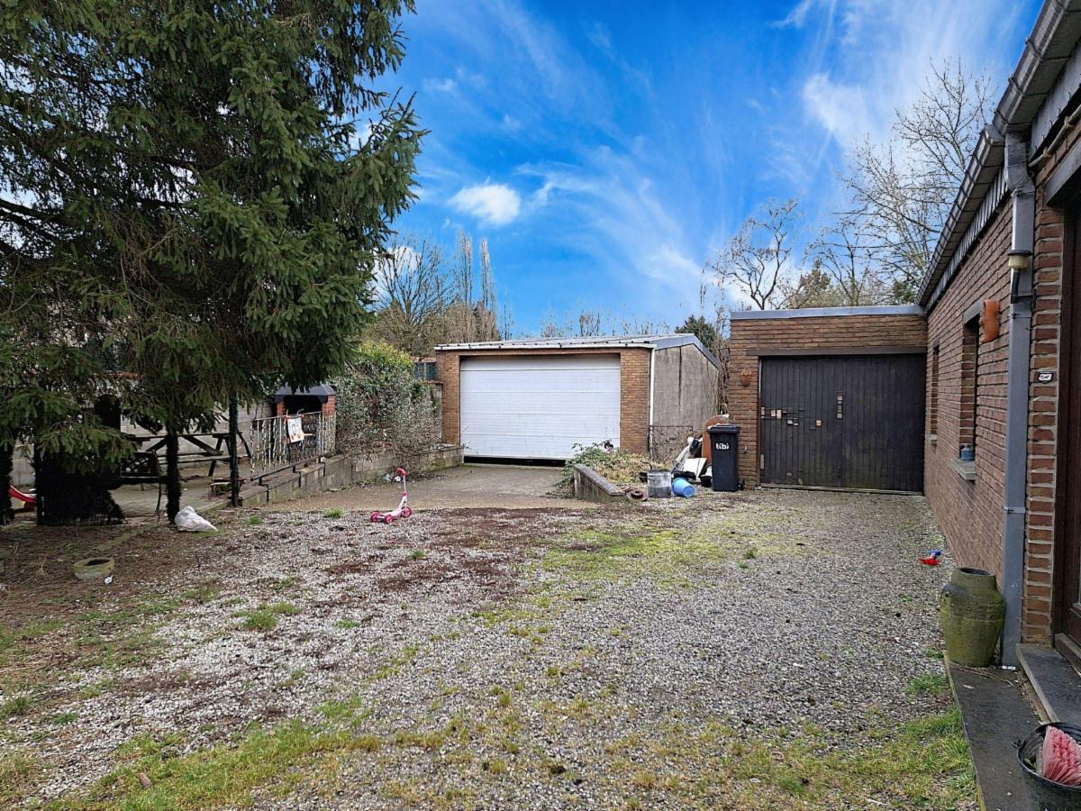 Maison d'habitation de plein pied avec jardin, garage et hangar comprenant :