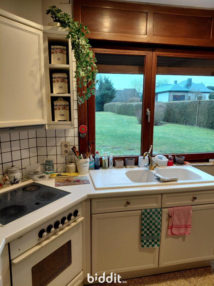 Maison d'habitation avec jardin et garage située à Marche-en-Famenne (Waha), Chaussée de Rochefort, 1. La maison se compose d'un rez-de-chaussée avec un hall, une pièce de vie, un salon/salle à manger, une cuisine équipée ainsi qu'un WC. Le premier étage se compose de trois chambres, une salle de bain avec un WC. Un grenier se trouve au troisième étage. La maison contient des caves en sous-sol.