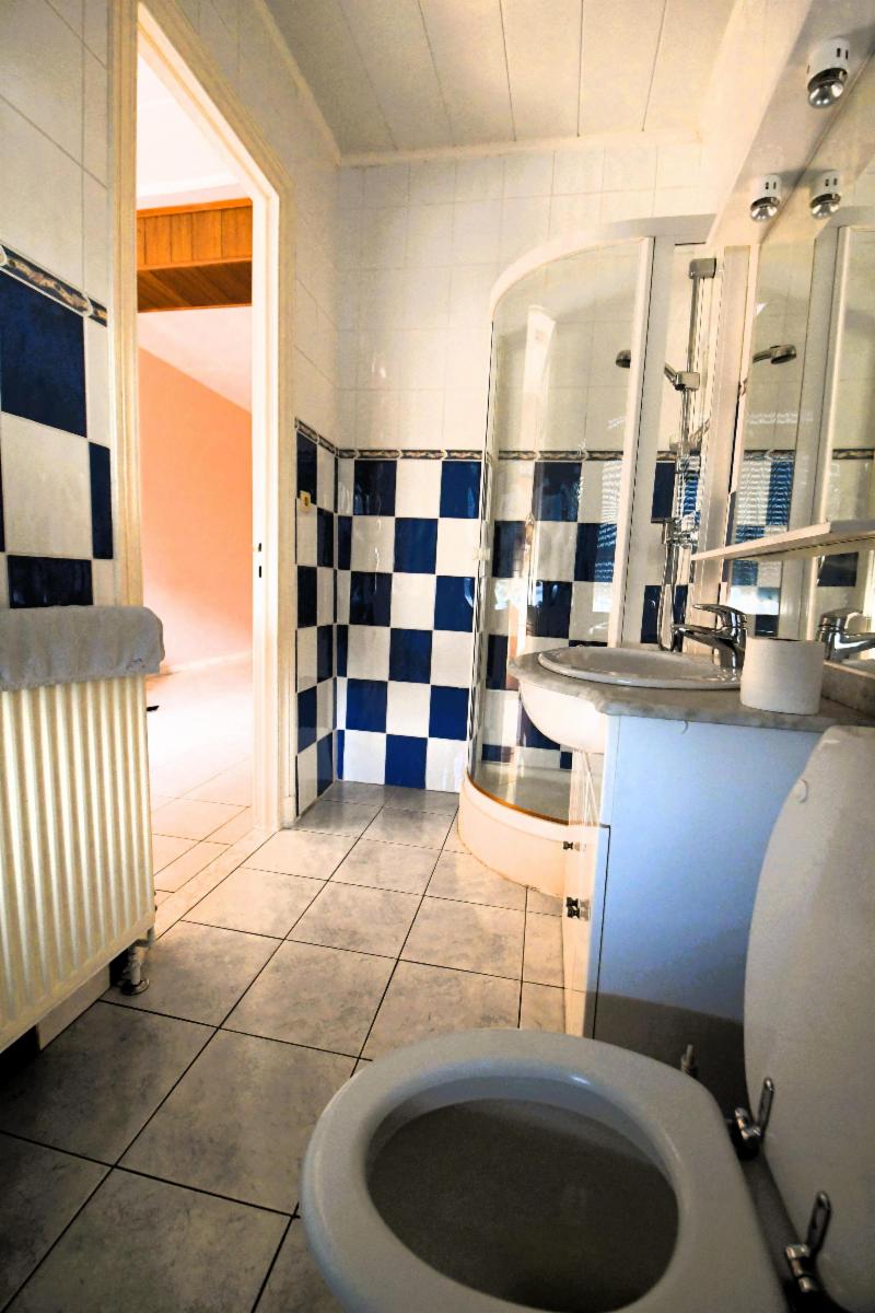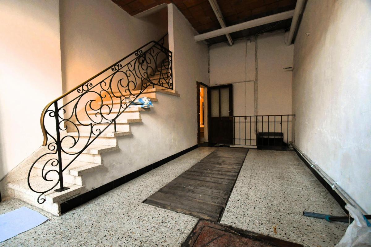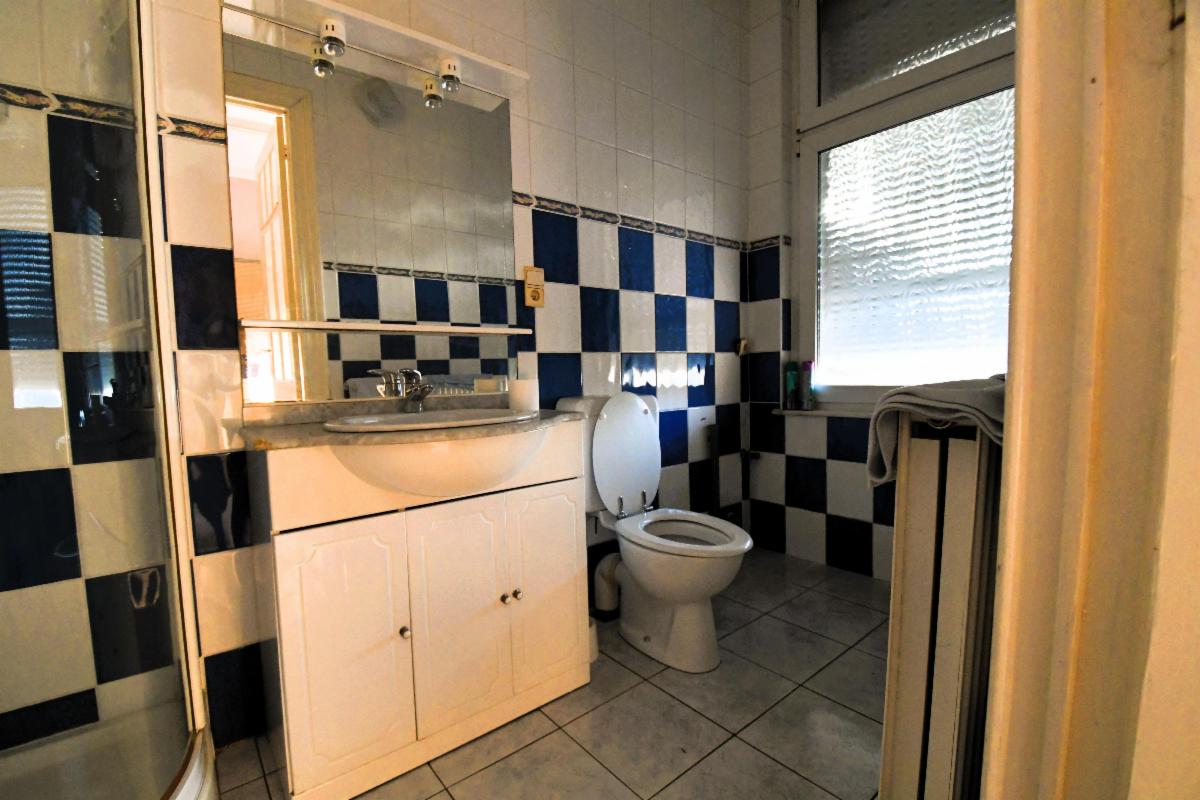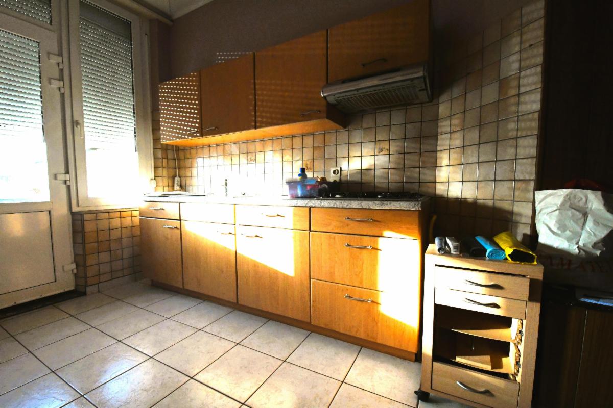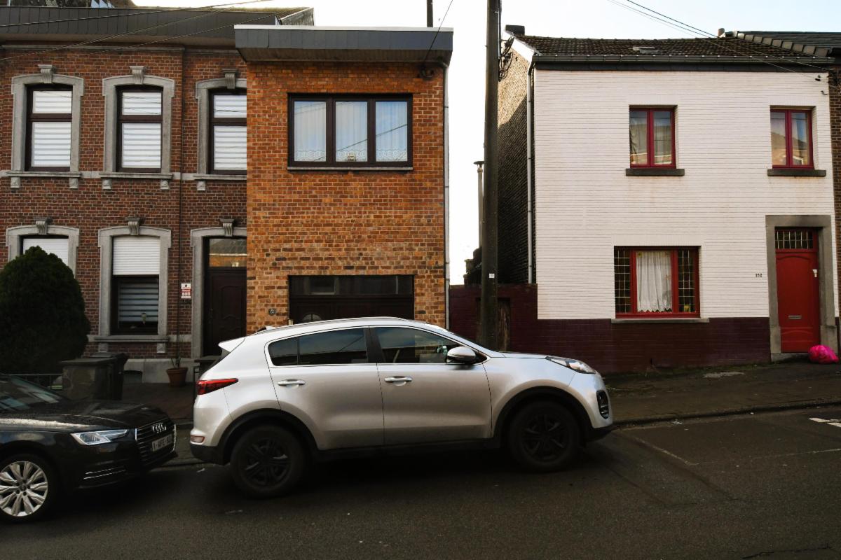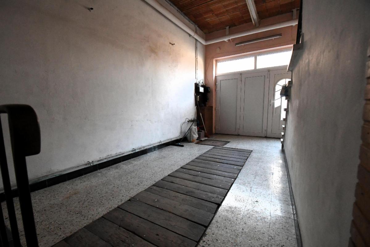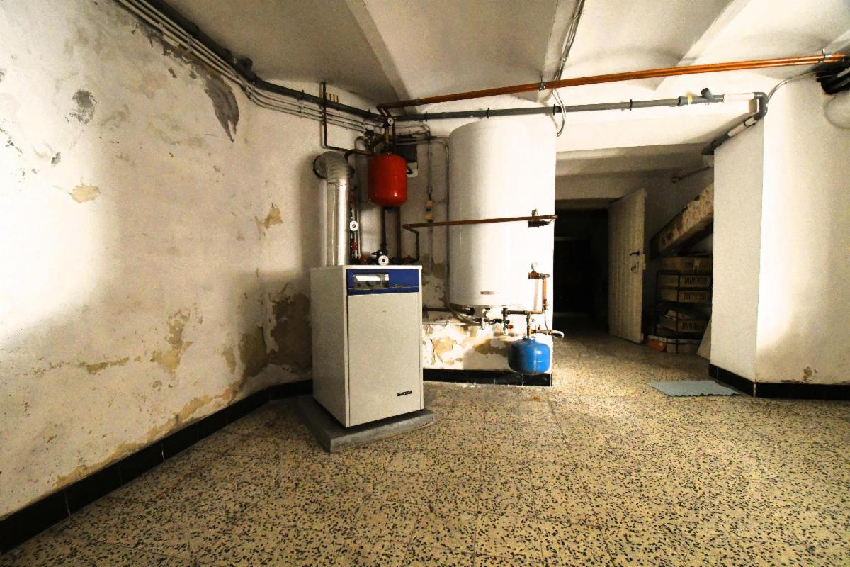 Maison d'habitation avec garage et jardin comprenant au rez-de-chaussée, un grand garage avec fosse et cage d'escalier, une pièce de séjour avec cuisine, une salle de bains (douche, évier et wc), une grande terrasse arrière avec escalier vers le jardin; au 1er étage: deux grandes chambres et une pièce à usage de bureau/rangement. Caves sous tout l'immeuble avec chaudière gaz et boiler. Châssis PVC double vitrage, sauf un en métal avec double vitrage et un en bois.