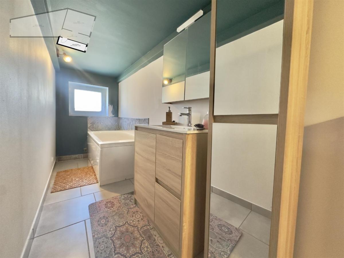 Au 1er étage, deux chambres avec volet et une salle de bains (baignoire, douche, lavabo et wc).
