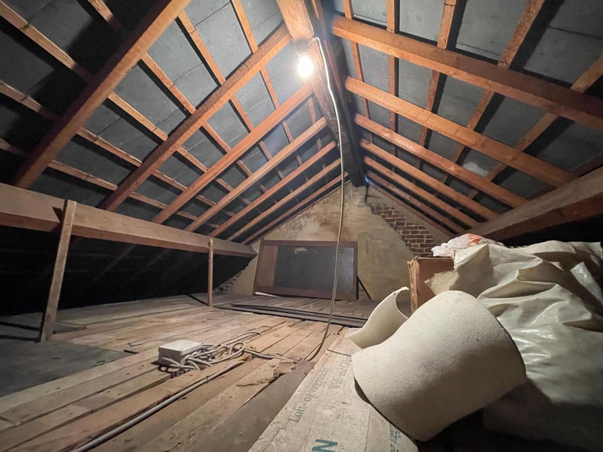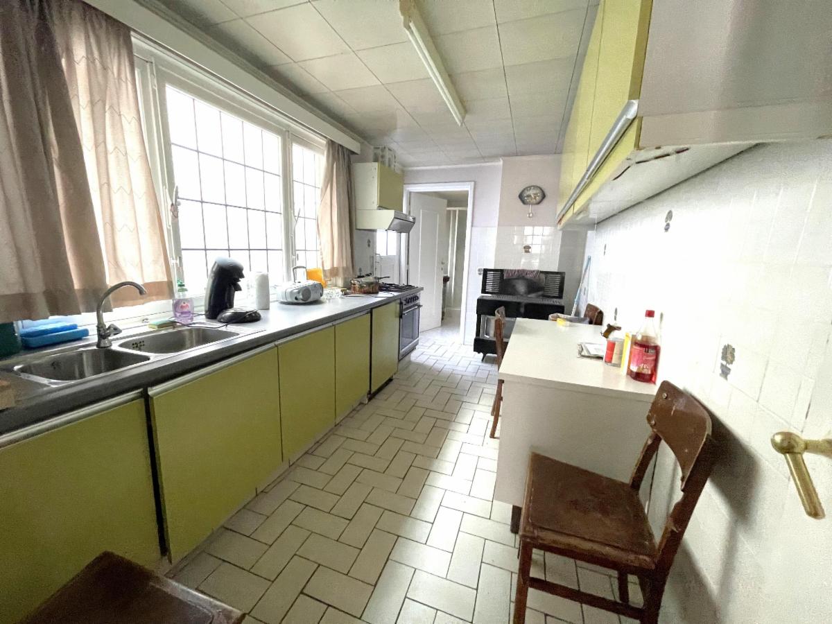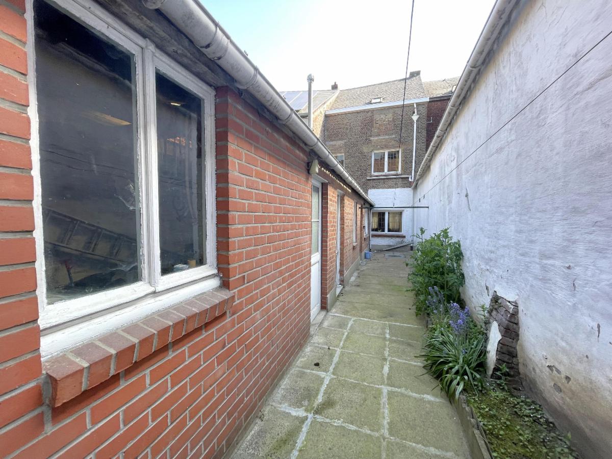 Maison de rangée à rénover, 4 chambres, une cour et une annexe. Grenier non aménagable. Deux caves en enfilades.