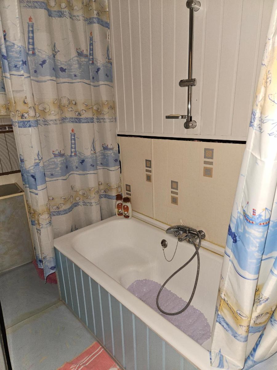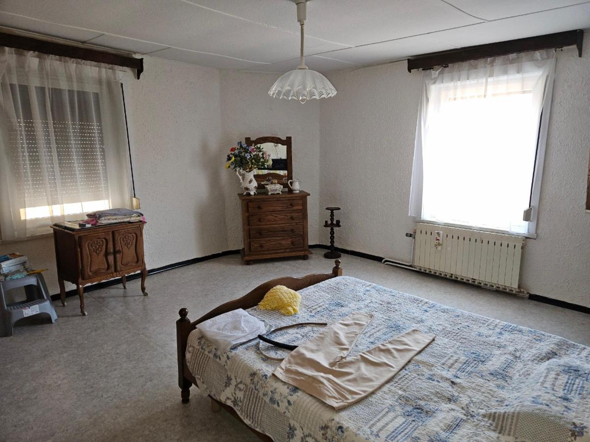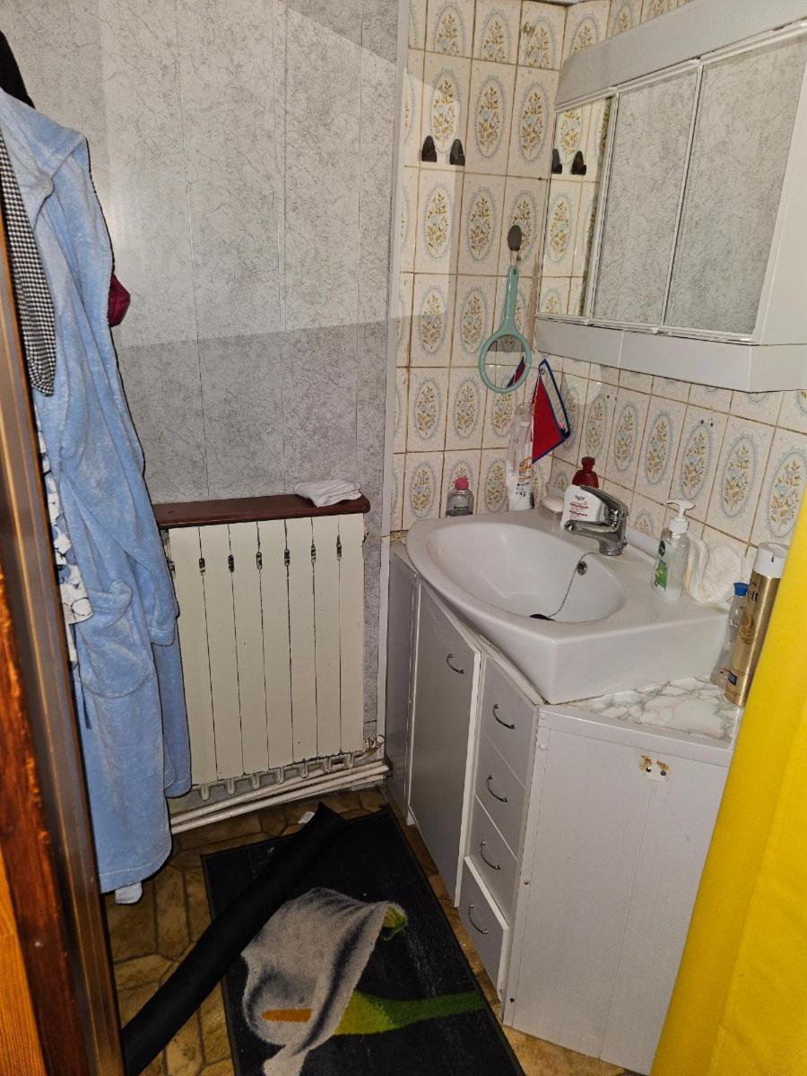 A l'étage : 1 chambre, 1 dressing avec accès salle de bains (WC, baignoire, évier).