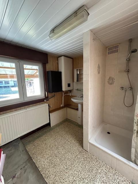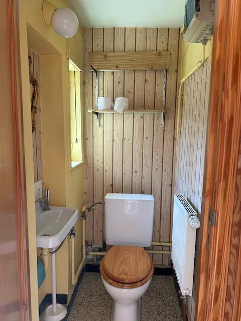Au rez-de-chaussée : un hall d'entrée, un salon, une salle à manger, une cuisine semi-équipée, une salle de bain (douche, évier avec espace pour machine à laver + sèche linge, chaudière), un WC séparé.