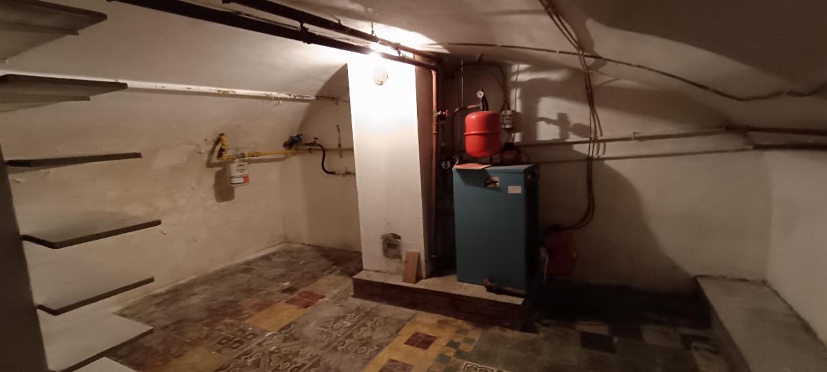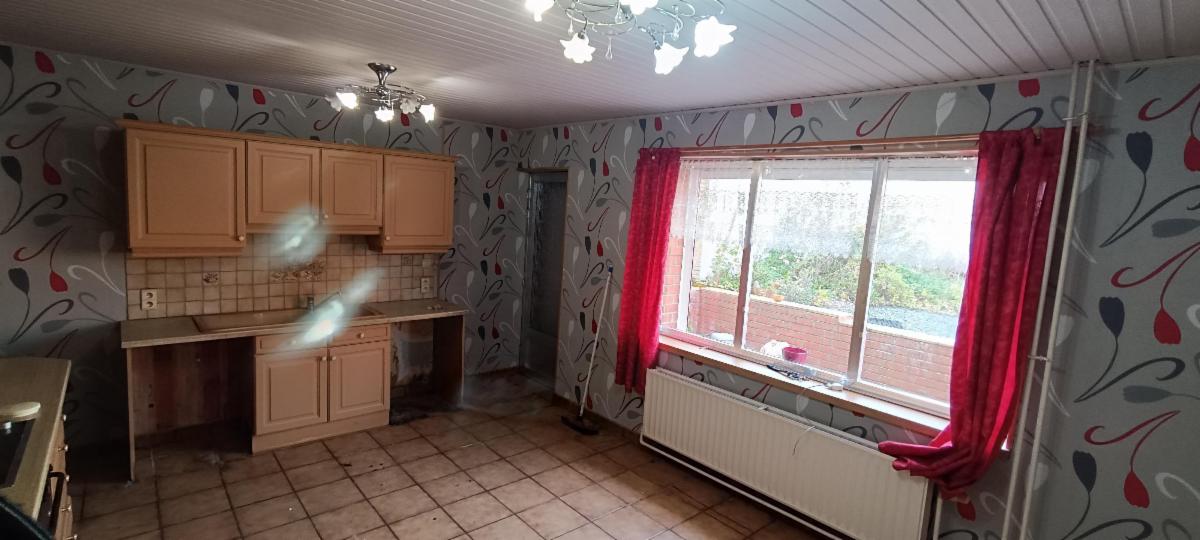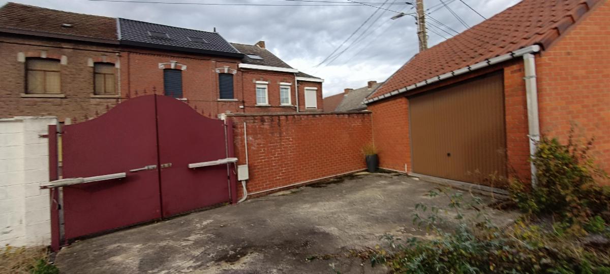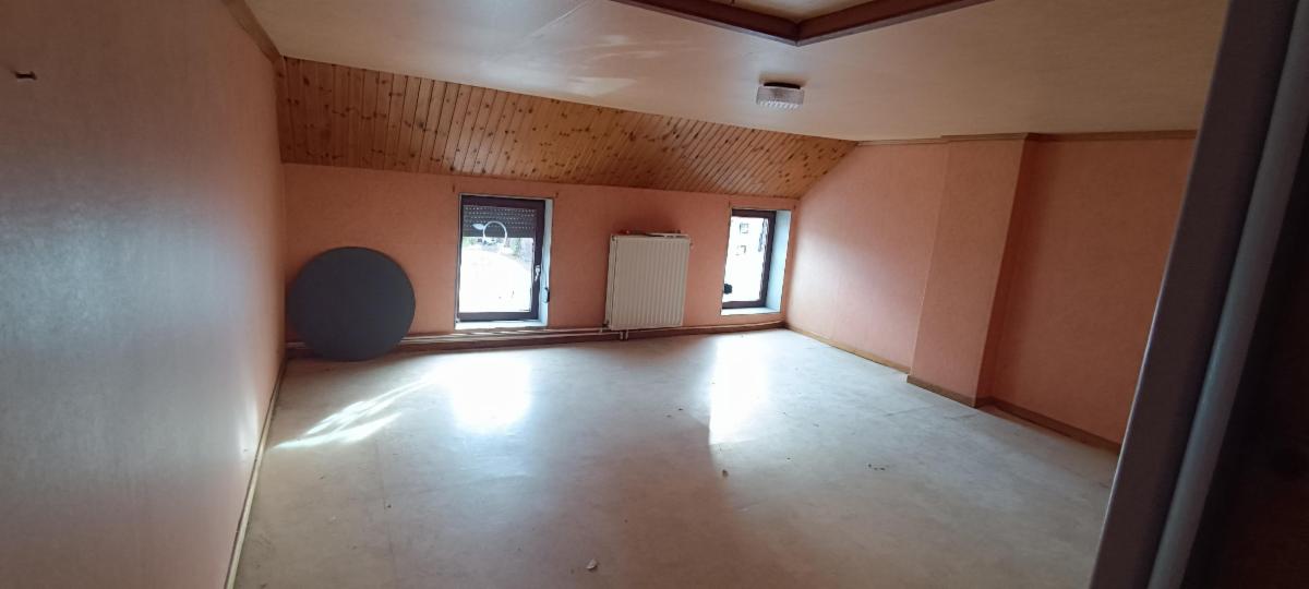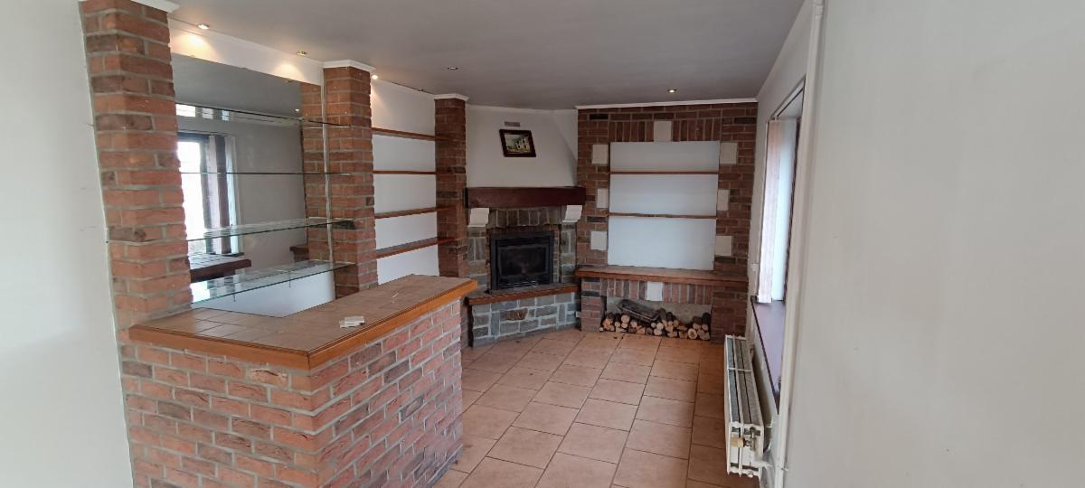 maison 3 façades avec garage sur terrain d'une contenance de 5a 60ca comprenant au rez-de-chaussée : un living avec feu au bois, une salle de bains (lavabo, WC, douche), cuisine non équipée, à l'étage : hall de nuit desservant 3 chambres, grenier aménagé. Chauffage central au mazout, châssis double vitrage, volets, 2 caves en sous-sol, terrasse, jardin et garage.