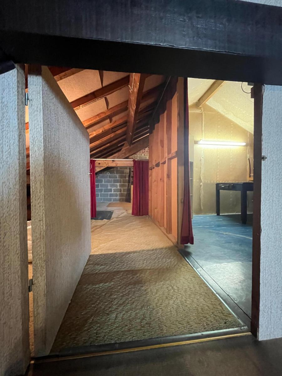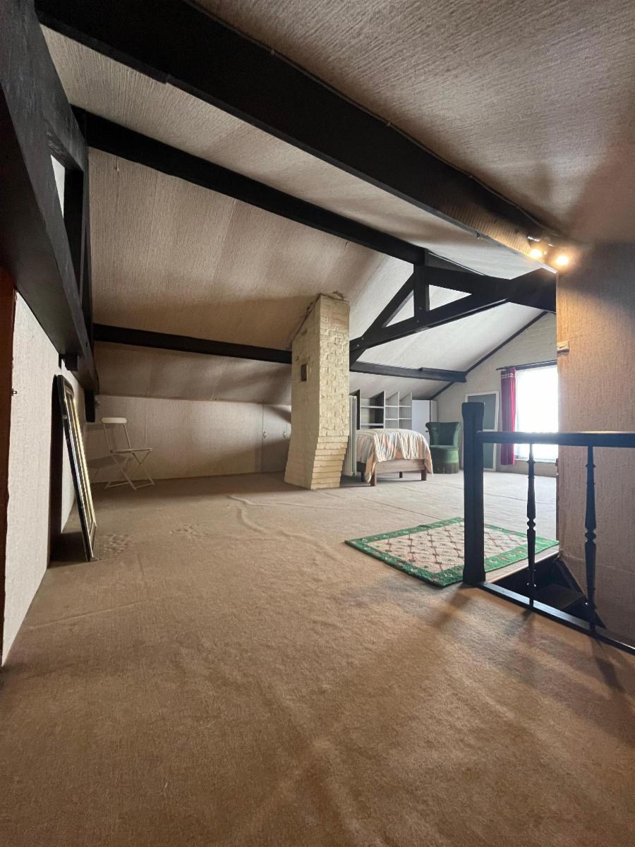 Le bien est composé au rez-de-chaussée d'un hall, d'un living spacieux, d'une cuisine (frigo, hotte, taque, four, évier), d'une salle de douche (meuble évier, WC, douche + arrivées machines), de 2 chambres et d'un bureau avec accès pour le grenier qui est en partie aménagé. Il y a également une cave.