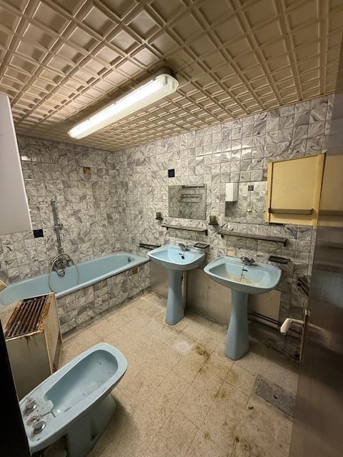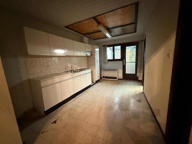 - Au rez: couloir, salon - salle à manger, cuisine, salle-de-bain (baignoire, évier)