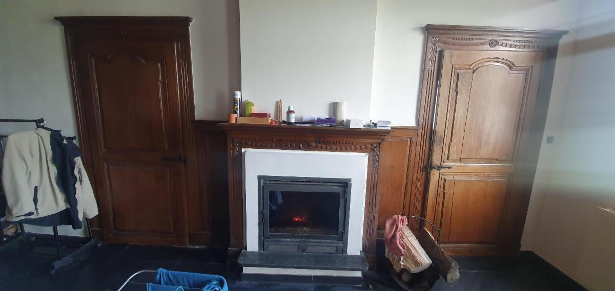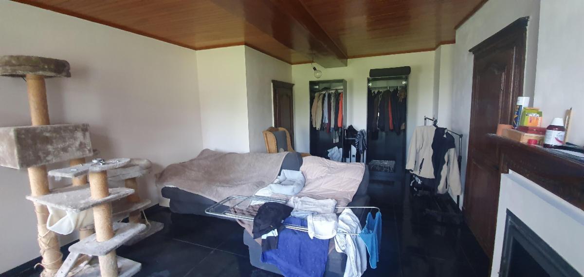 Présente encore des matériaux anciens, belles portes et cheminée en bois du XVIIIème siècle, Caves voûtées (plus facile d’accès par le 3A) RDC Hall (bel escalier), salon (feu cassette) 30 m², grande salle de bains pouvant faire office de buanderie, douche balnéo, évier, baignoire et 3 chambres (28, 20 et 16 m²) Garage-chaufferie pour les 2 logements, cuisine équipée et vaste espace dinatoire de 30 m²