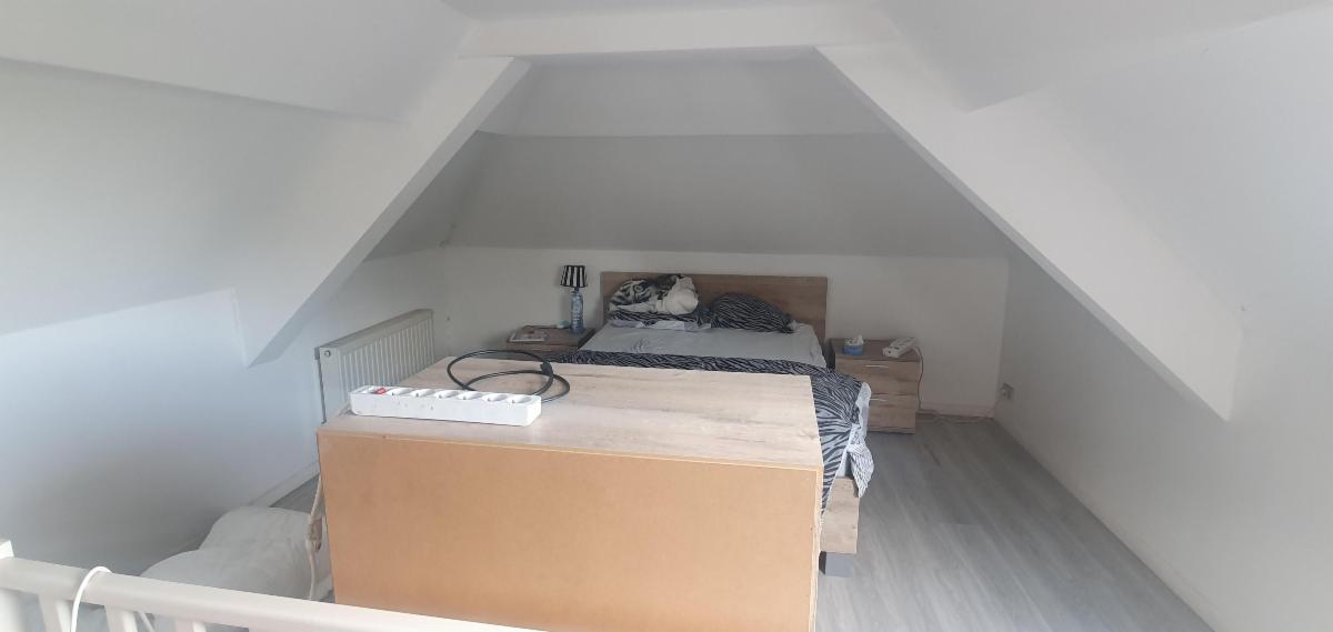 Au demi-étage accessible par 4 marches, un espace sanitaire douche, wc, lavabo avec dégagement accédant à une lumineuse et grande chambre de 14 m², une petite véranda complète ce bien. (Occupé par locataire loyer de 500 euros bail écrit),
