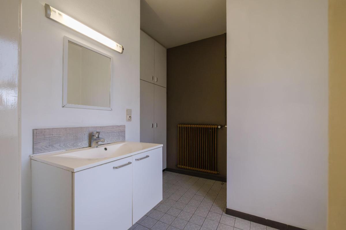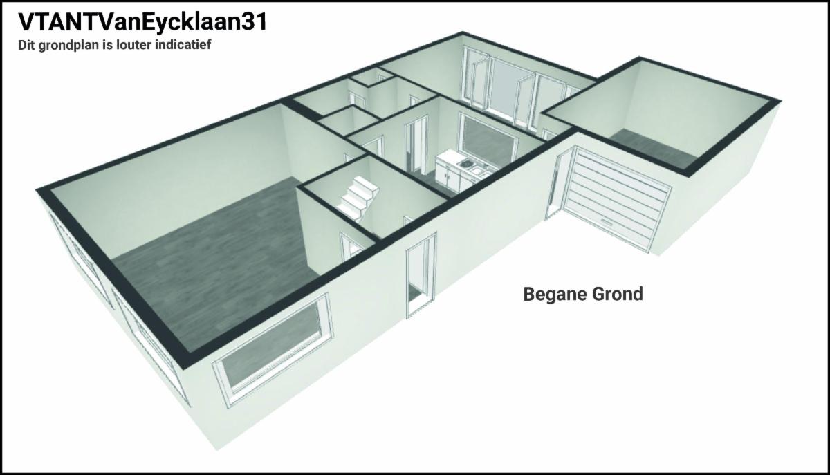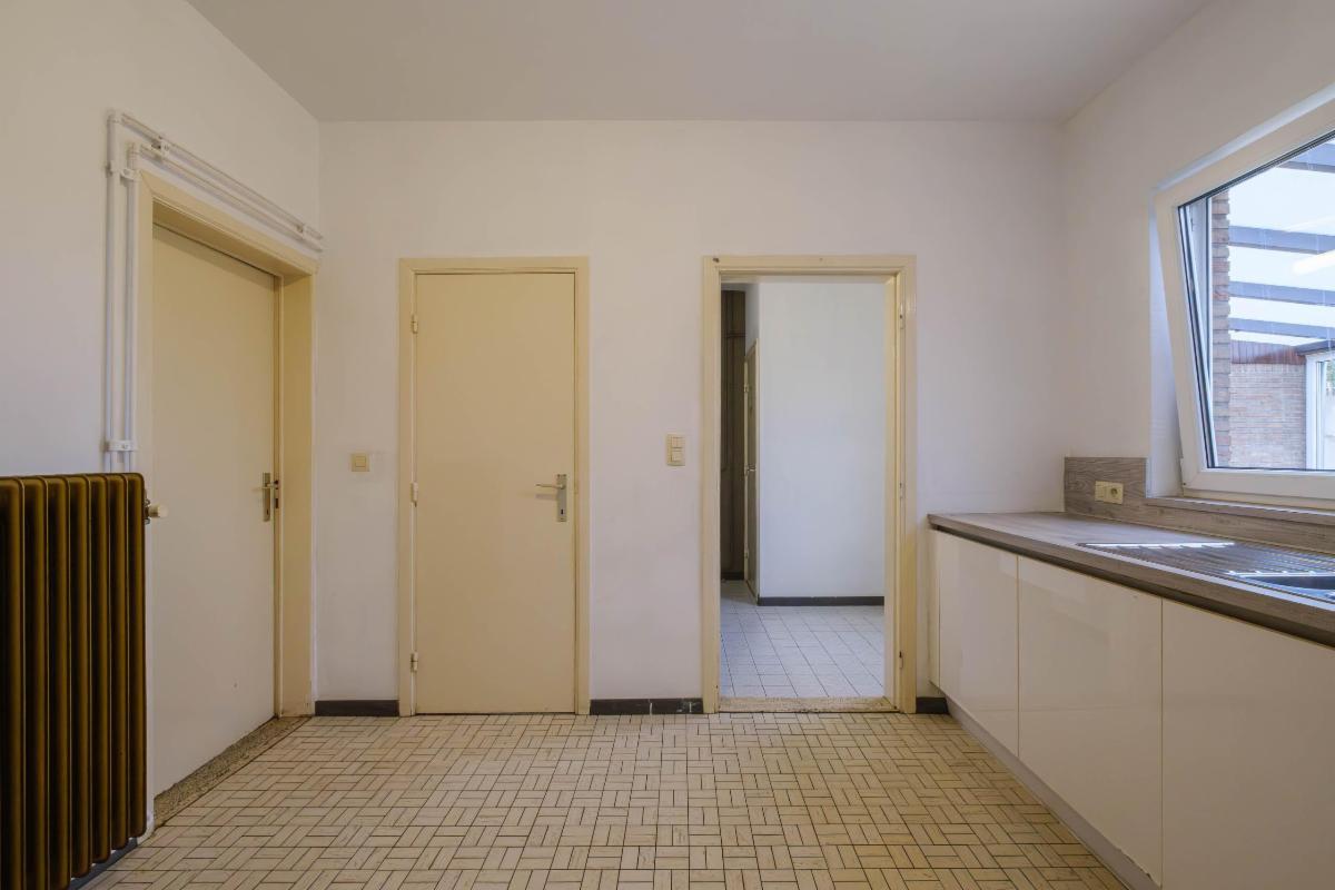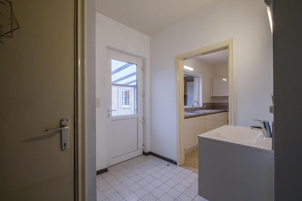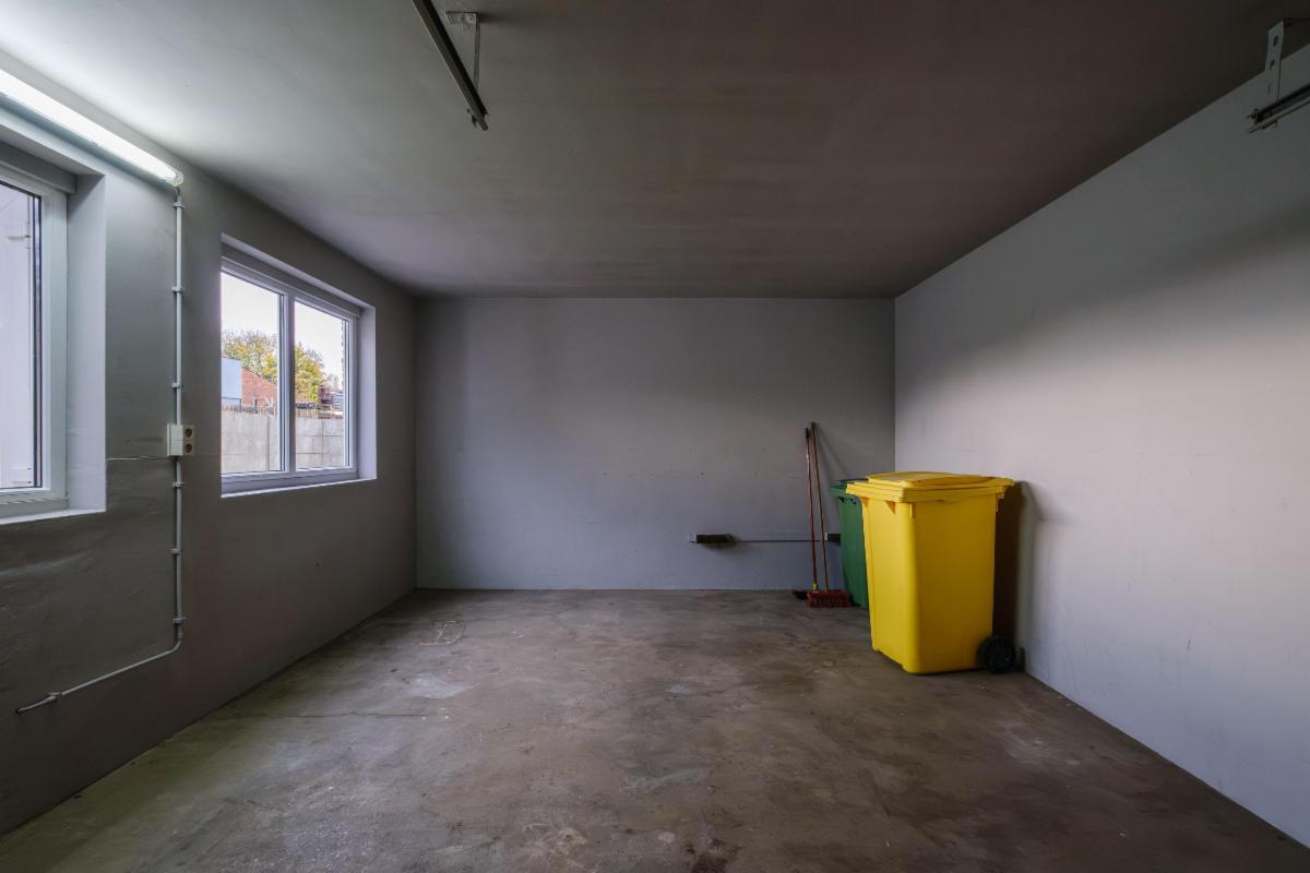 Le hall d'entrée donne accès au salon spacieux et lumineux d'environ 34 m². Le salon mène à la cuisine équipée. À côté de la cuisine, un débarras frais a été prévu.