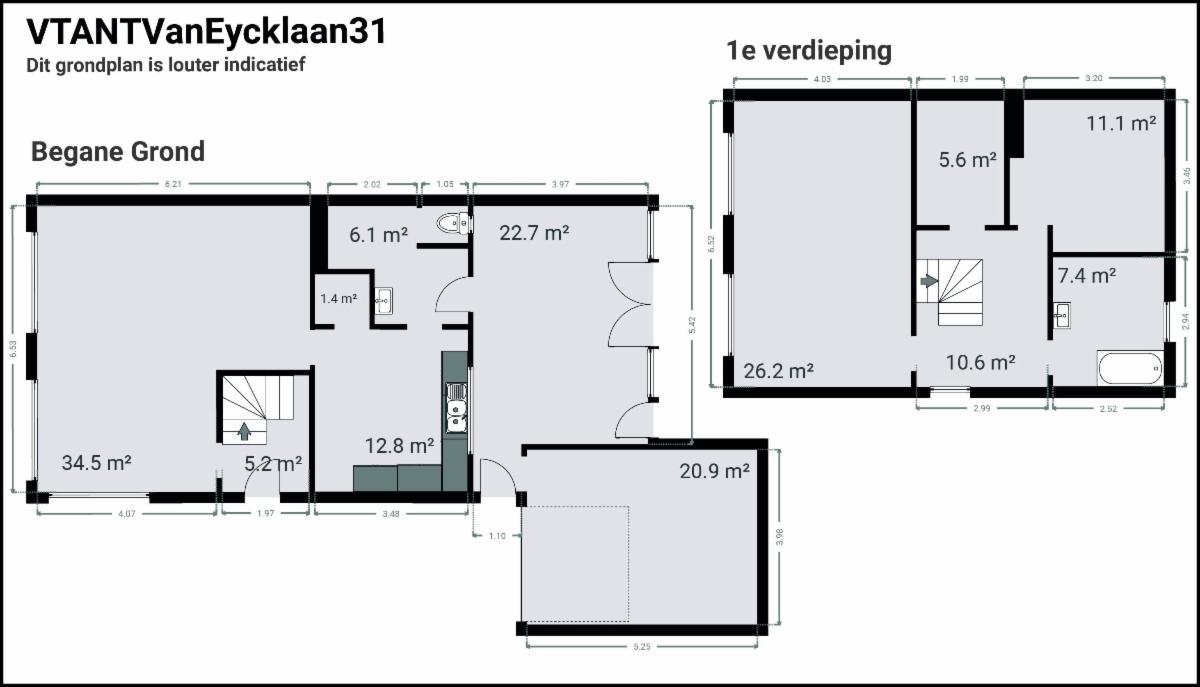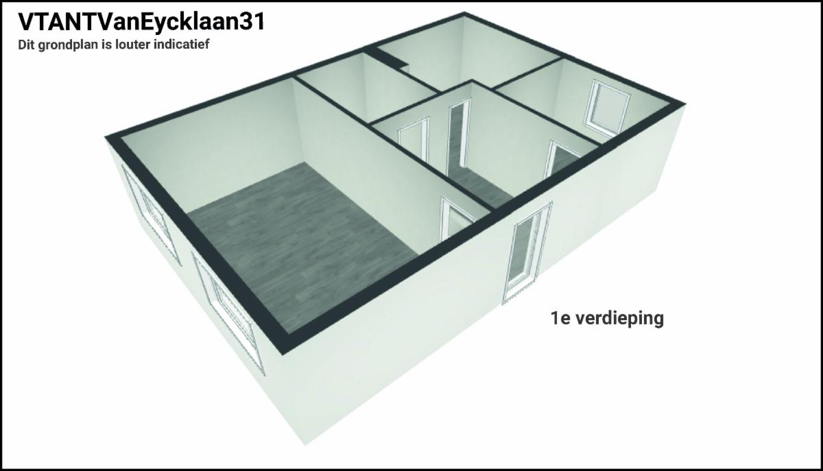 L'étage est accessible par un escalier en colimaçon peu encombrant. On y trouve le hall de nuit, trois chambres, dont une chambre spacieuse de 26 m², et la salle de bains, qui est équipée d'une baignoire et d'un meuble de salle de bains avec lavabo.