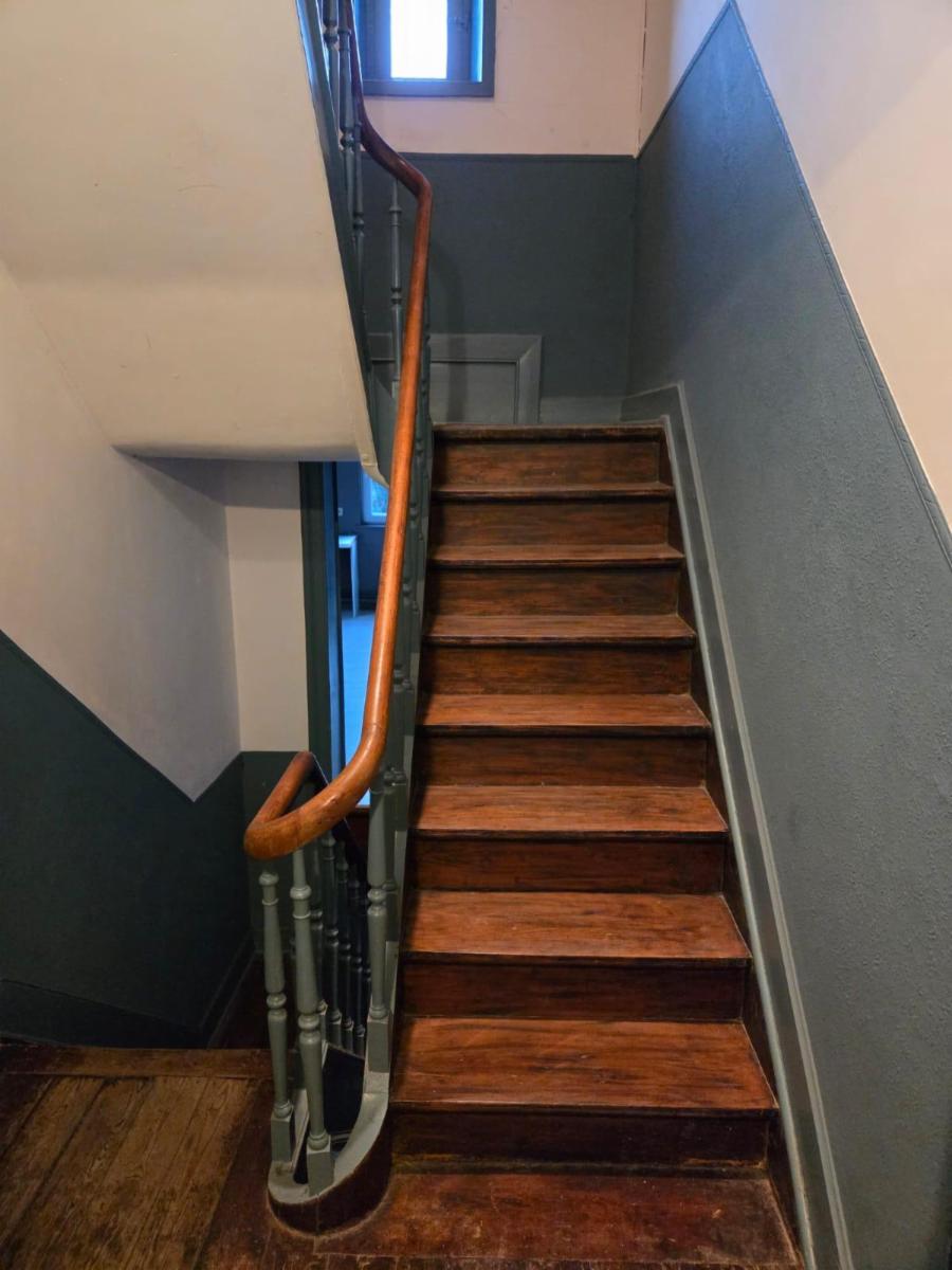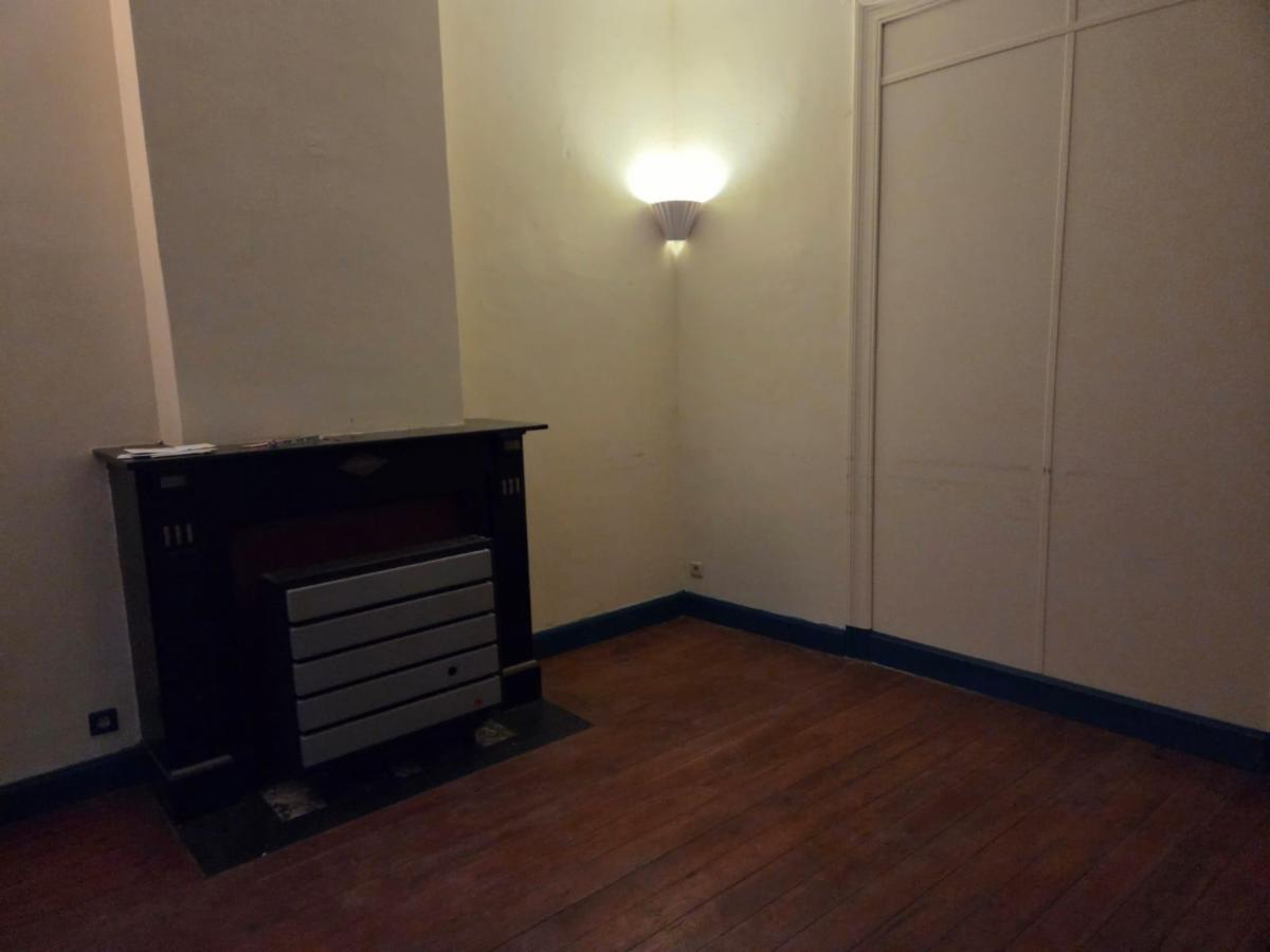 Au demi-étage : une grande chambre avec lavabo et douche.