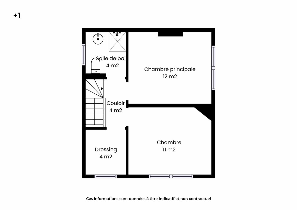1er étage: 2 chambres, salle de bain, dressing (ou bureau).