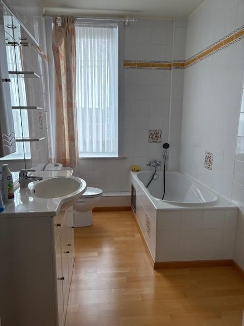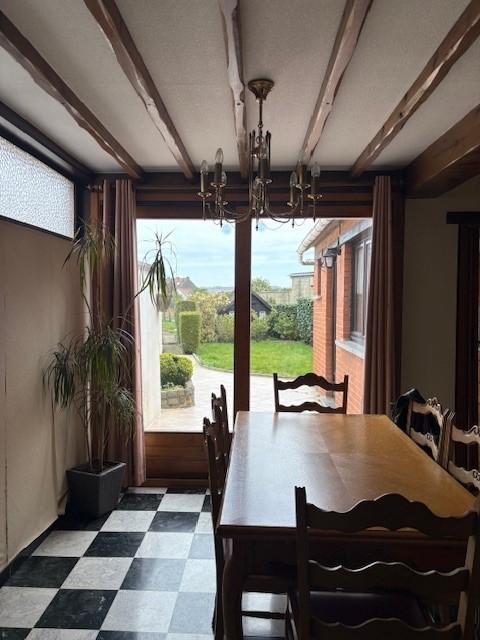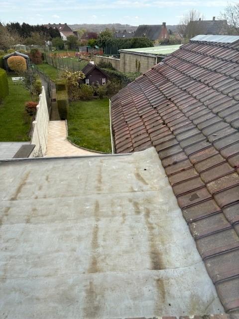 REZ :hall d’entrée, pièce avant, living avec k7 bois, cuisine équipée, wc, terrasse, jardin, abri de jardin, passage latéral commun.