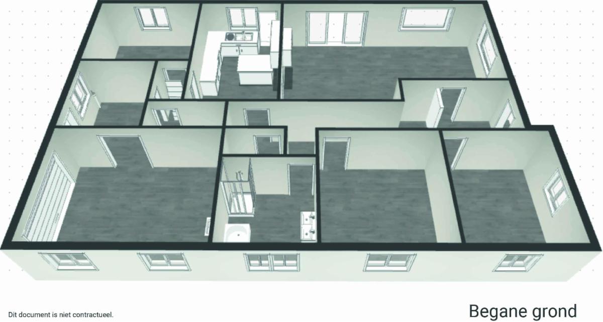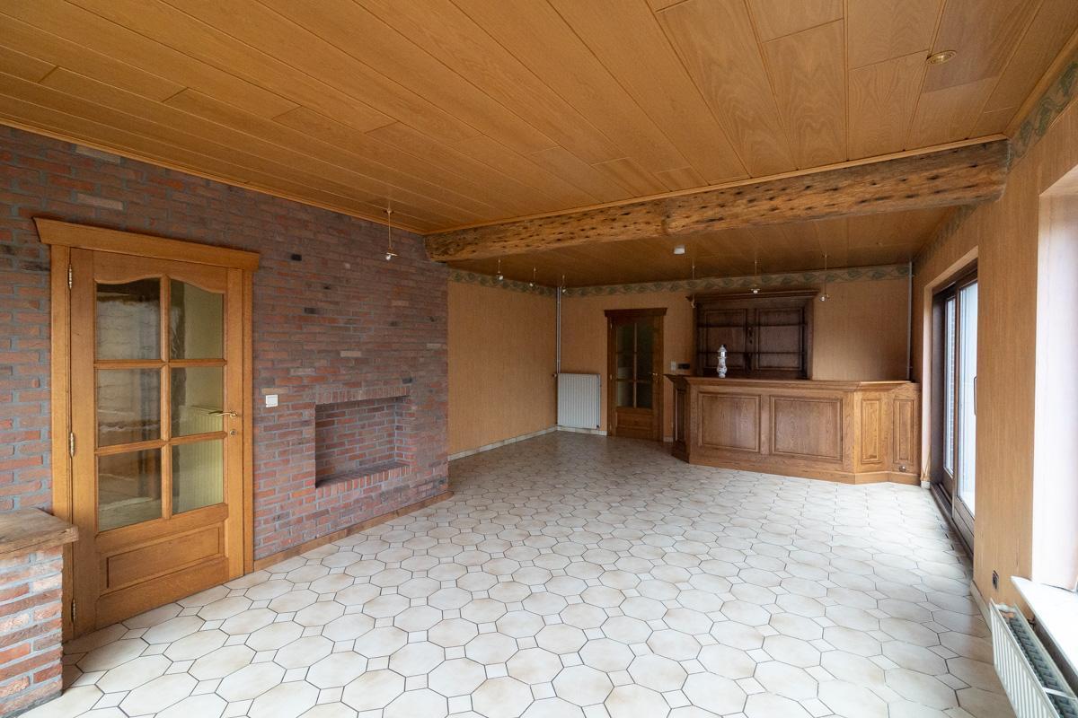 Au rez-de-chaussée se trouvent un hall d'entrée, un salon, une salle de séjour, une cuisine, un débarras, des toilettes, une salle de bains et trois chambres.