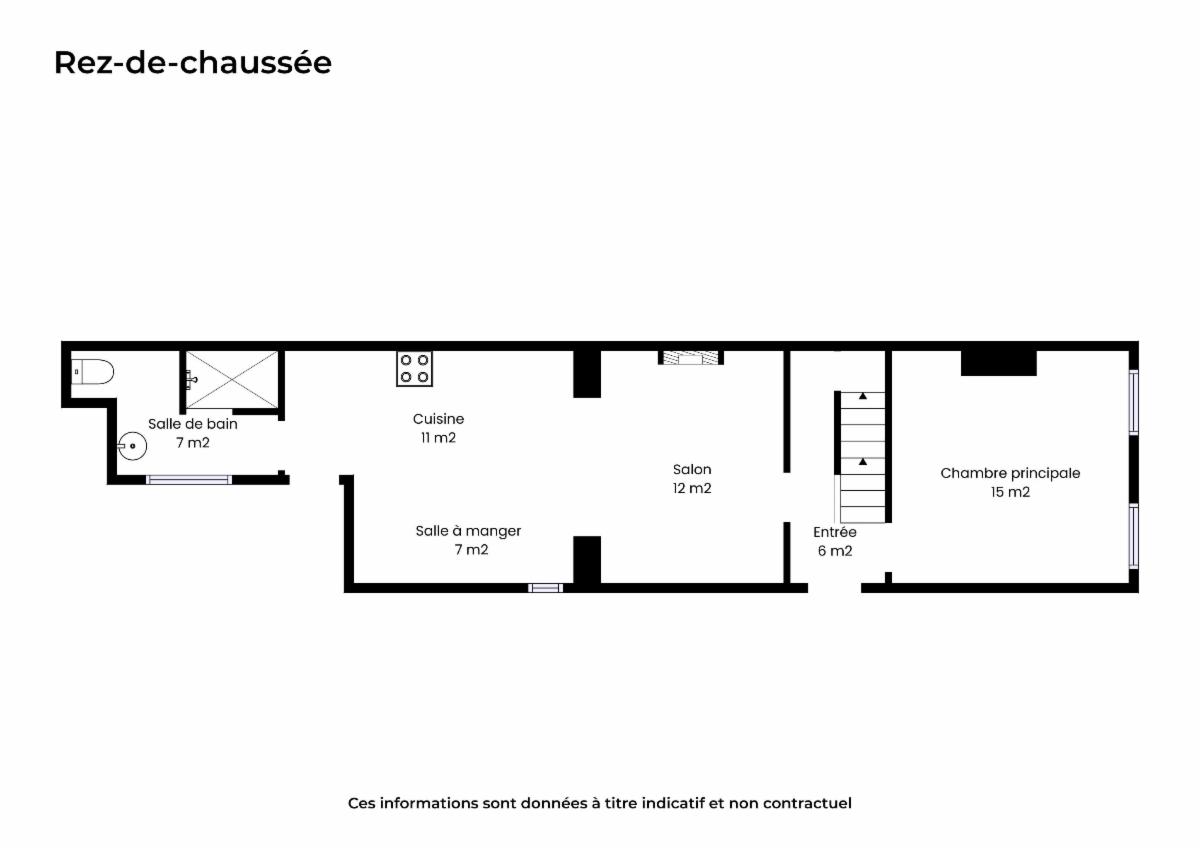 - Au rez-de-chaussée : hall d'entrée, cuisine, salon, salle-à-manger, salle de bain et 1 chambre