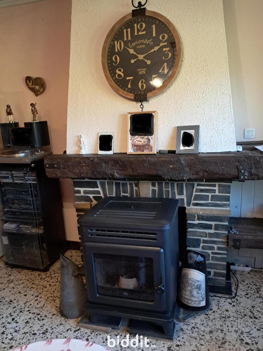 - Rez-de-chaussée : hall d’entrée, WC avec évier, salon/salle à manger avec poêle à pellets, cuisine équipée neuve avec cuisinière au bois, WC, sas entre la cuisine et l’entrepôt (débarras), un salon/bibliothèque/chambre d’amis et un entrepôt ;