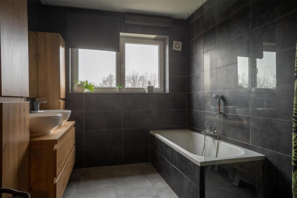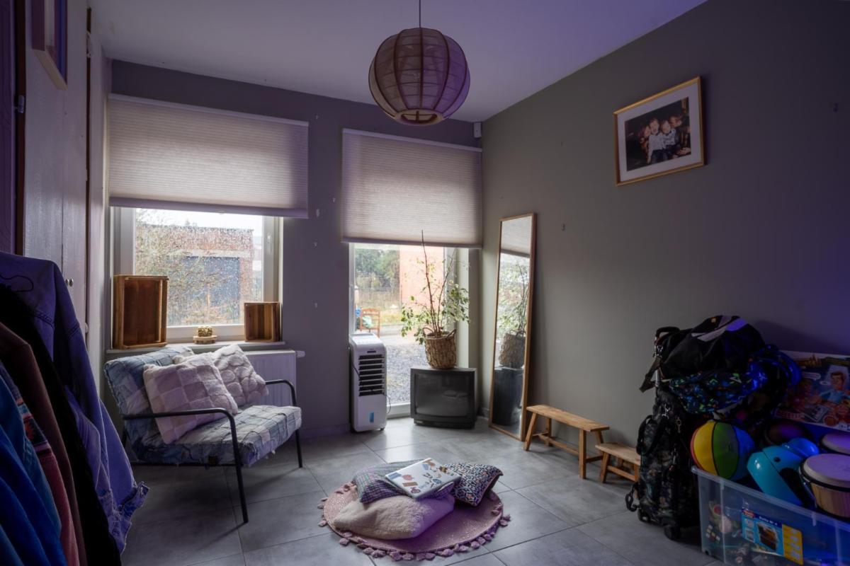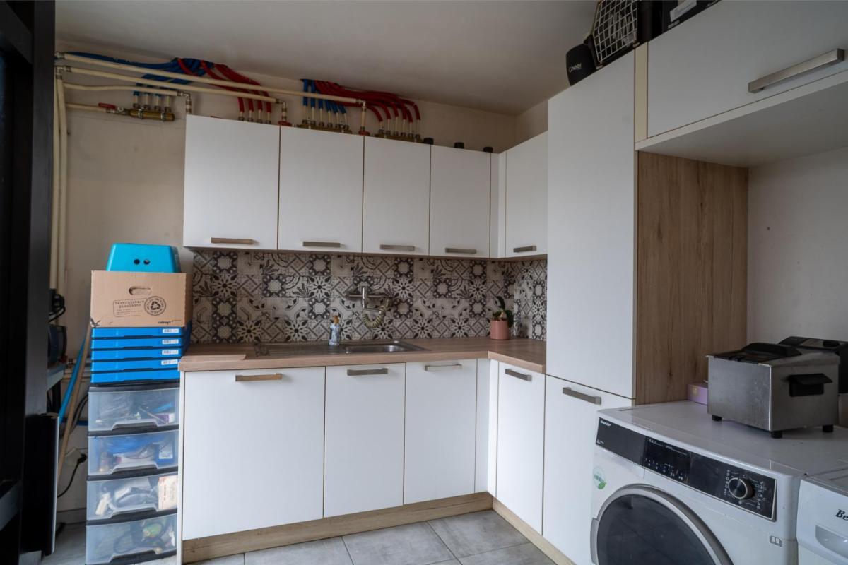 - au rez-de-chaussée: un hall d'entrée, un grand living, une cuisine équipée, une buanderie, un WC séparé, une chambre (avec un accès séparé), une terrasse et un jardin.