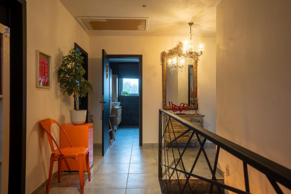 - au premier étage: quatre chambres, une salle de bain (avec double vasque, bain, et douche) et un WC séparé.