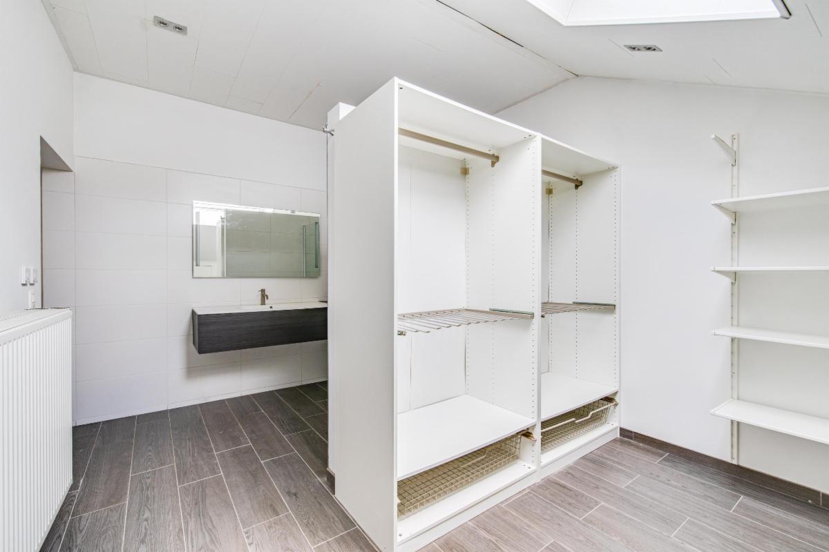 Une chambre à l’arrière avec salle de douche et un dressing
