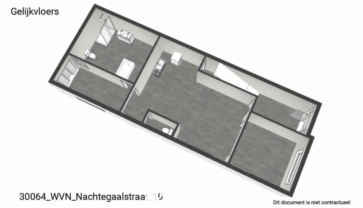 La maison comprend un hall d'entrée, un spacieux salon, une cuisine, une toilette séparée, une salle de bains et un jardin ensoleillé.