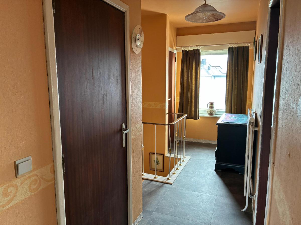 Au premier étage, nous trouvons un hall de nuit avec salle de bains et trois chambres. La maison a besoin d'être rafraîchie, mais dispose d'une base solide et robuste. La cuisine a déjà été rénovée.