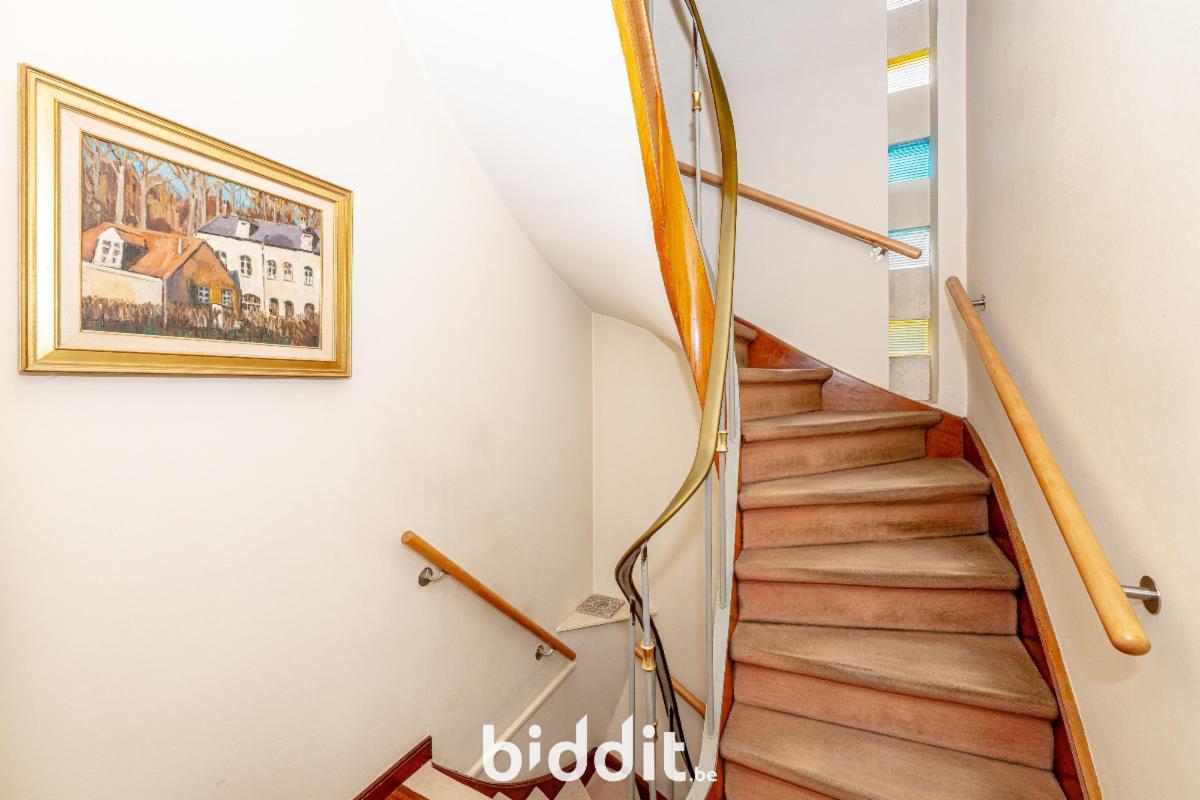 Charmante maison 3-façades idéalement située dans un quartier verdoyant d’Auderghem, à deux pas de la Forêt de Soignes, offrant un cadre de vie paisible et lumineux, avenue Paul Vanden Thoren 45 pour une superficie de 2a 83ca. Comprenant au niveau de la porte d’entrée : toilette d’invité, vestiaire, pièce polyvalente, cave classique, cave chaudière, garage - au niveau rez jardin (1e étage côté rue) : cuisine, salle à manger donnant sur la terrasse et le joli jardin sans vis-à-vis orienté sud-est, salon en L avec cheminée - au niveau du 1e étage (2e côté rue) : 3 pièces (chambres ou bureau), salle de douche, wc séparé - Grenier aménageable accessible via escalier escamotable. Eventuel potentiel d’aménagement à vérifier avec l’urbanisme. 18 panneaux photovoltaïques sur le toit. Proximité transports, écoles et commerces. R.c.n.i. 1.866€. Libre d’occupation. Zone d’habitation à prédominance résidentielle. Le bien fait l’objet d’observations par la Commune, reprise dans les rens. urb. Le bien est vendu en l’état et l’adjudicataire en fera son affaire personnelle. PEB E/242. Contr. électr. non conforme. Visites : mercredis 12-19-26/11, 3/12 de 10-12h et samedis 8-15-22-29/11, 6/12 de 9-11h.
