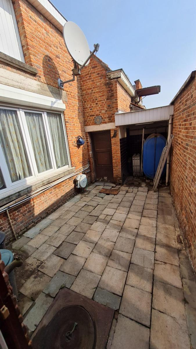 Au rez-de-chaussée, vous trouverez un salon/living lumineux, une cuisine équipée et un accès vers une cour extérieure sans jardin. La maison dispose également d’une cave sèche offrant un espace de rangement supplémentaire.
