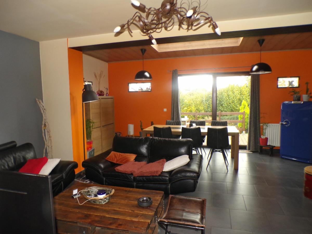 • Rez: hall, cuisine équipée, living avec accès à une belle terrasse et un jardin (orientation EST) donnant une belle vue dégagée.