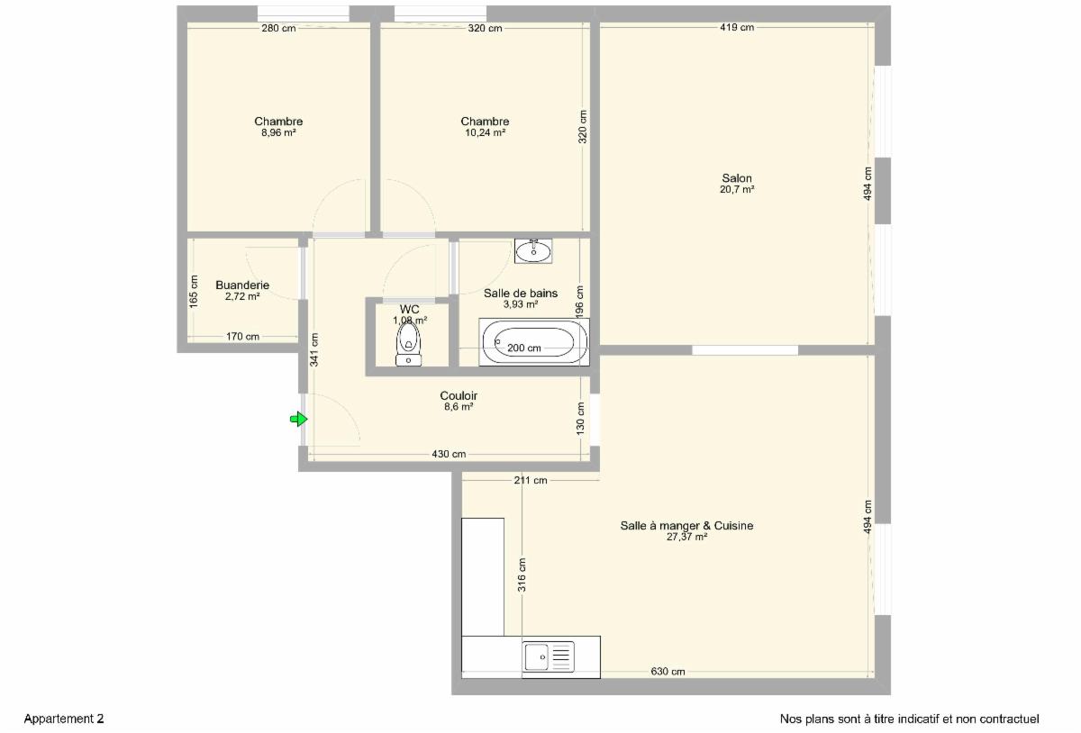 • Appartement 2 : deux chambres, séjour/salon/salle à manger, cuisine équipée, hall d’entrée, salle de bains et WC séparé.