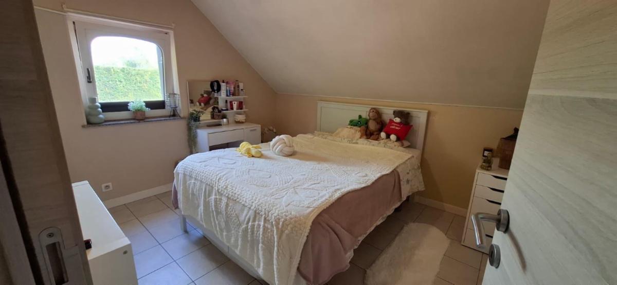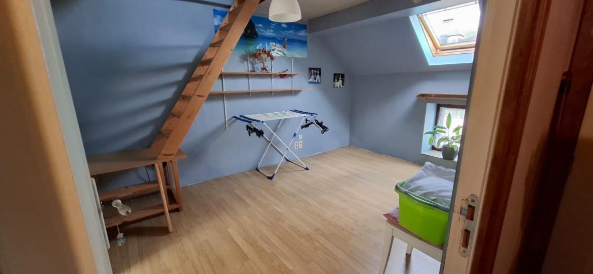Étage : hall de nuit, 2 chambres (dont une avec accès au grenier), salle de douche.