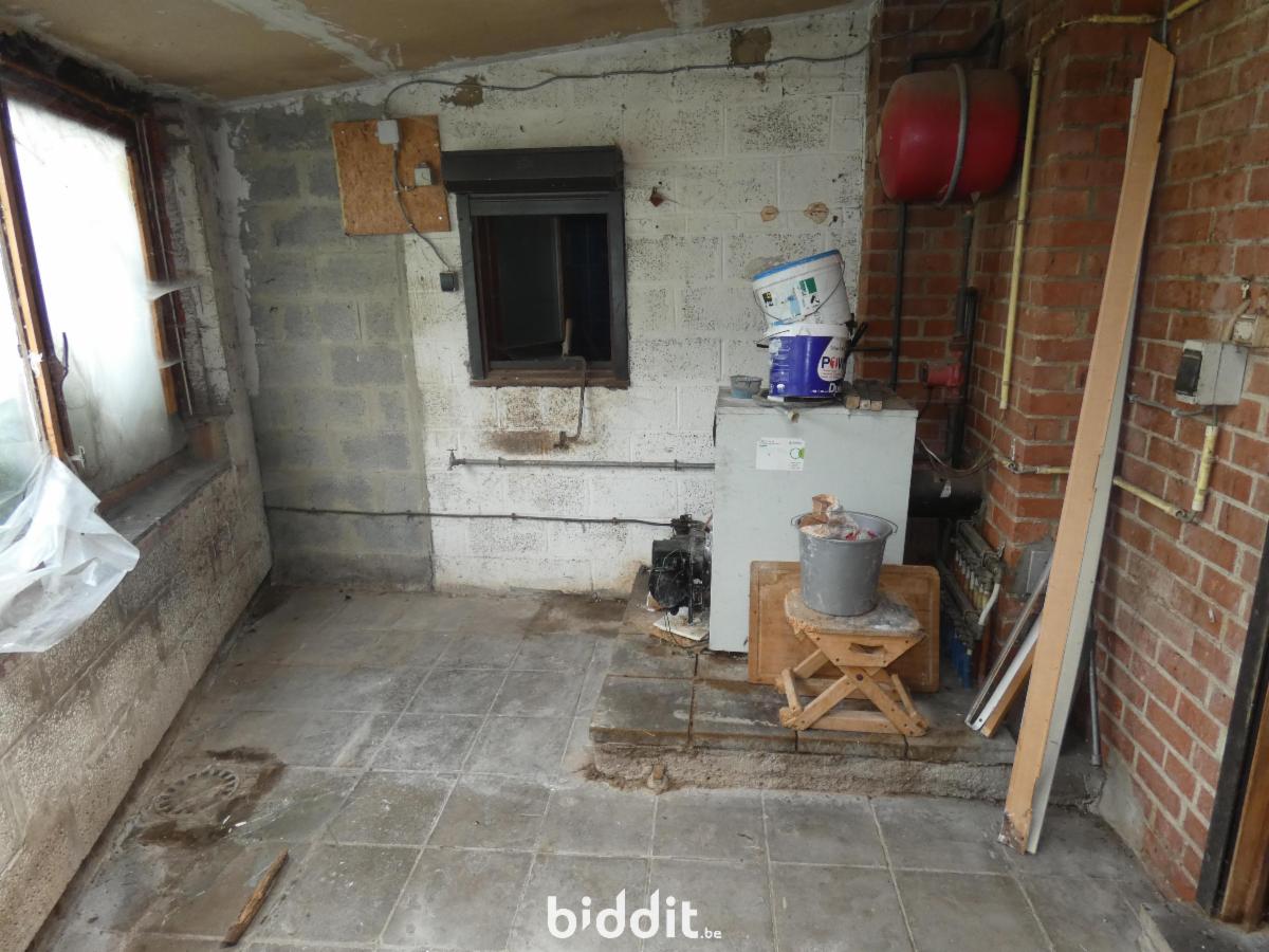Maison d'habitation située dans un cadre paisible en retrait de la voirie. Le bien se compose au rez-de-chaussée d’un hall d’entrée, d’un salon, d’un bureau (pouvant être utilisé comme chambre), d’une cuisine, d’une salle à manger, d’une chaufferie, d’une salle de bain avec wc et d’une annexe arrière. L’étage dispose de deux chambres. Le bien bénéficie d’un jardin et d'une remise à l’avant. Pas de cave ni grenier. Système chauffage : chauffage central mazout (chaudière non fonctionnelle et plus de citerne).