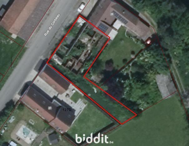 Une ruine avec dépendances et terrain sise Rue du Corbeau, numéro 23, cadastrée selon titre section A numéro 129/D pour cinq ares quatre-vingts centiares et selon extrait de matrice cadastrale datant du 4 mars 2025, soit il y a moins d’un an, même section, numéro 129DP0000 pour une même contenance.
