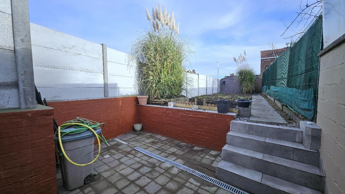 Saine maison mitoyenne avec jardin et parking arrière, comprenant :
