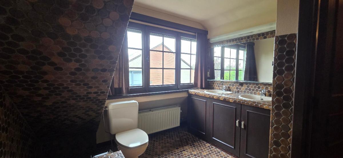 RENSEIGNEMENTS DIVERS : Chauffage central au gaz de ville,, avec chaudière à condensation dans le garage – cassette à bois dans le séjour – Installation électrique monohoraire non conforme – pas de panneaux photovoltaïques – châssis double vitrage en bois – volet partout – toiture en tuiles isolées en 2013 – jardin sur le pourtour de la maison - deux garages de 23,82 (2,78*8,57) et de 16,35 m² (3,20*5,11) - certificat PEB : F – R.C. : 1,313,00 euros