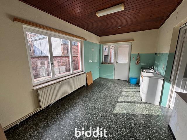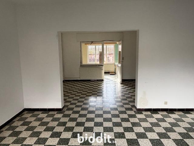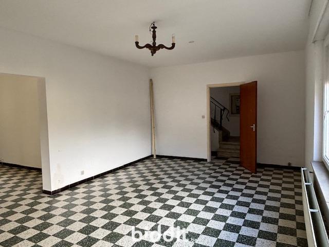 Maison 2 façades lumineuse et spacieuse à Grâce-Hollogne composée de : AU REZ-DE-CHAUSSEE : un hall d'entrée, un vaste living (salon et salle à manger), une cuisine non équipée, une grande buanderie avec accès à une petite salle de bains avec une baignoire, un évier et un bidet. ENTRESOL : un WC. 1ER ETAGE : un palier et quatre chambres. SOUS-SOL : une cave avec évier, une cave avec la chaudière et la citerne à mazout, et un garage une voiture. EXTERIEUR : à l'arrière, une cour couverte et ouverte sur une petite terrasse le long de la façade arrière. A l'avant, une grande allée pouvant accueillir 2 à 3 véhicules. Châssis bois simple vitrage. Volets partout sauf dans la cuisine et à l'étage. RC non indexé : 1.222 euros.