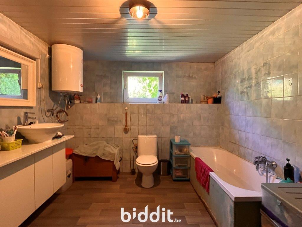 Au niveau des équipements, la maison est raccordée à l’eau de ville et aux égouts, dispose d’une citerne d’eau de pluie, de châssis en PVC double vitrage avec volets, d’une installation électrique bi-horaire avec compteur budget, ainsi que d’un système de chauffage combinant poêle à pellets et cassette à bois. La toiture est en ardoises et n’est pas isolée.