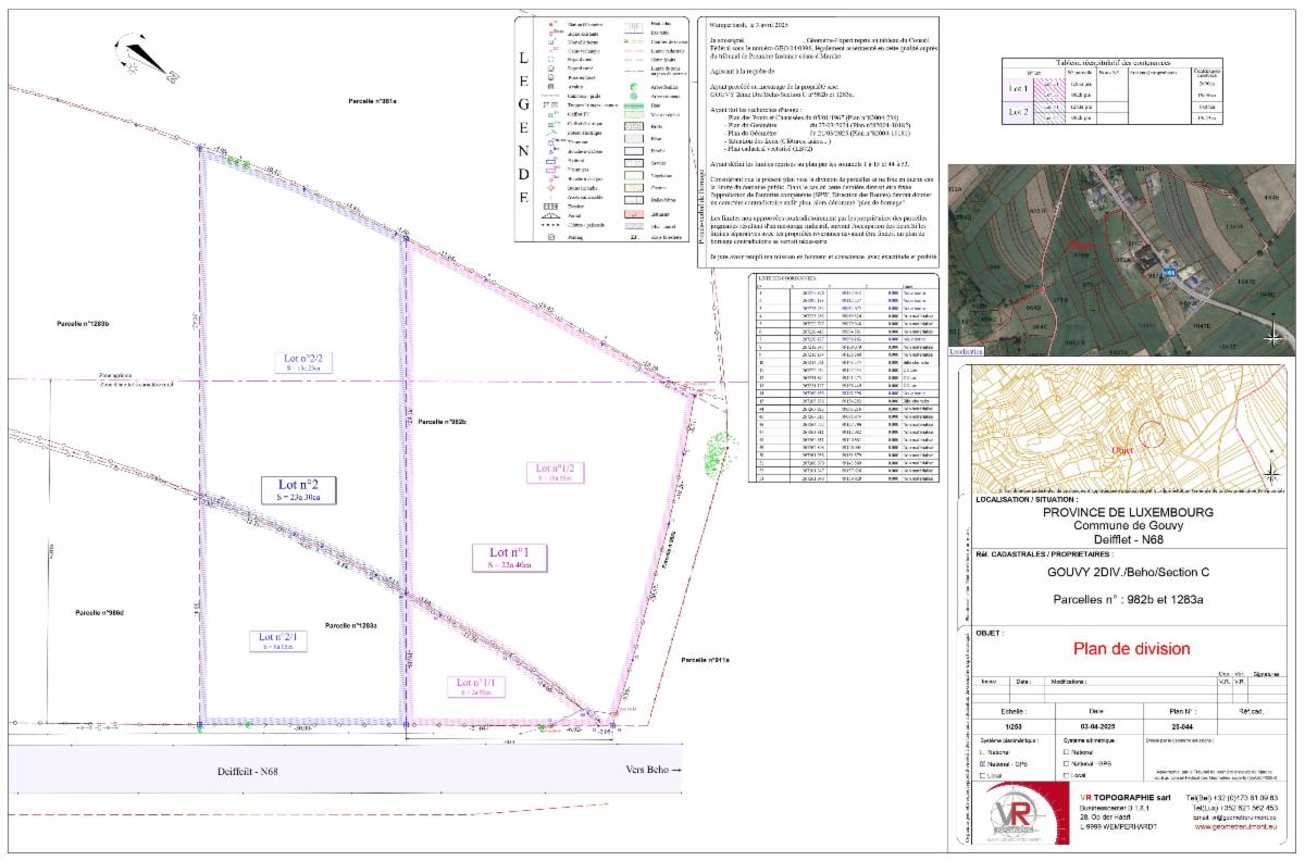 Saisissez l’opportunité d’acquérir un terrain de 22 ares 40 centiares (lot 1) à Deiffelt, situé à quelques minutes de la frontière luxembourgeoise. Ce terrain spacieux, a proximité d'une rue passante, offre une excellente visibilité et un accès pratique tout en bénéficiant d'un cadre verdoyant.