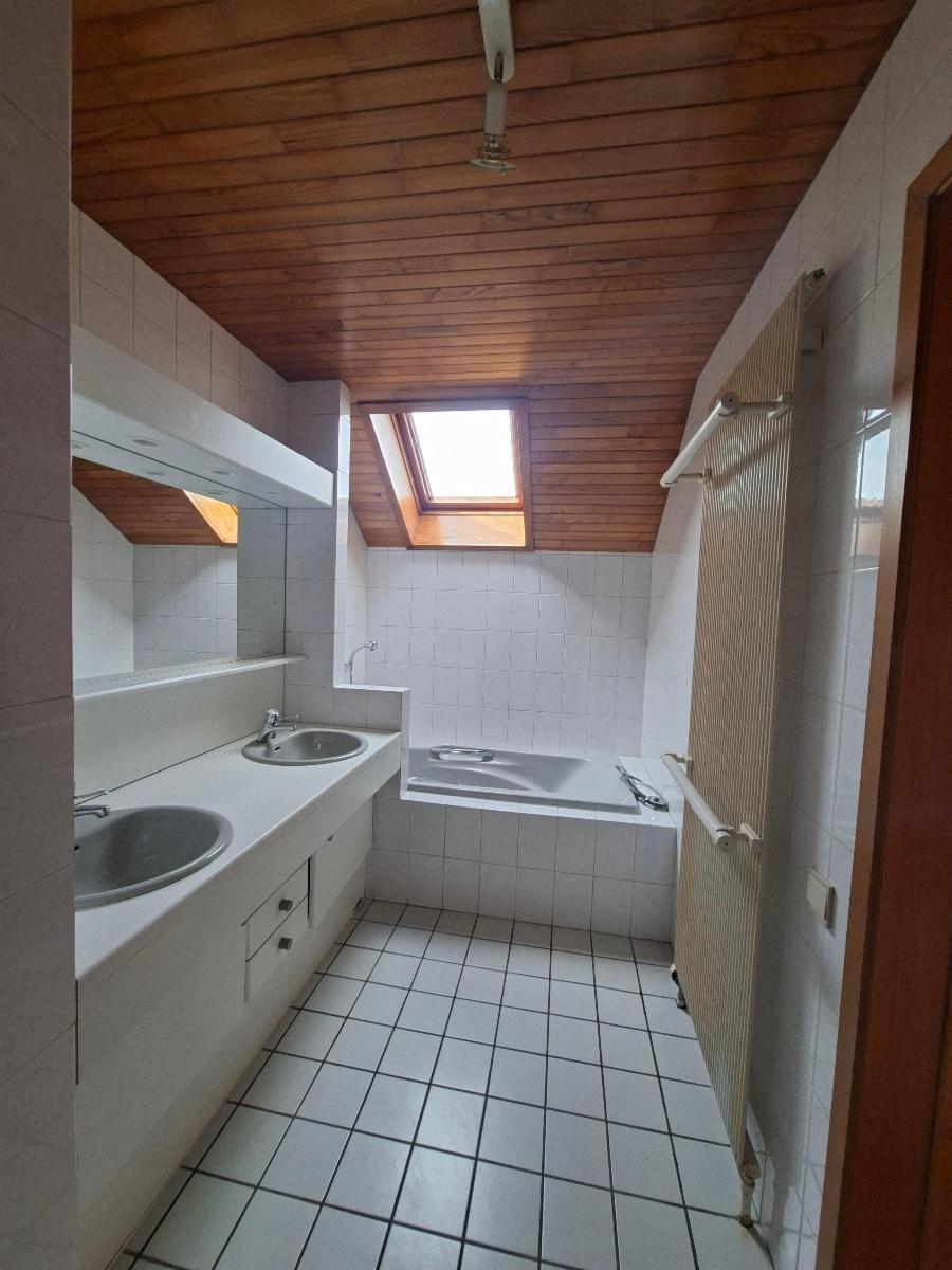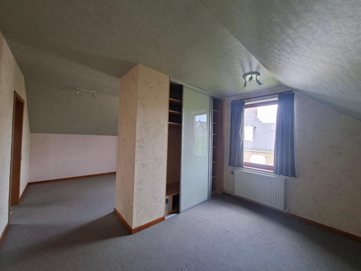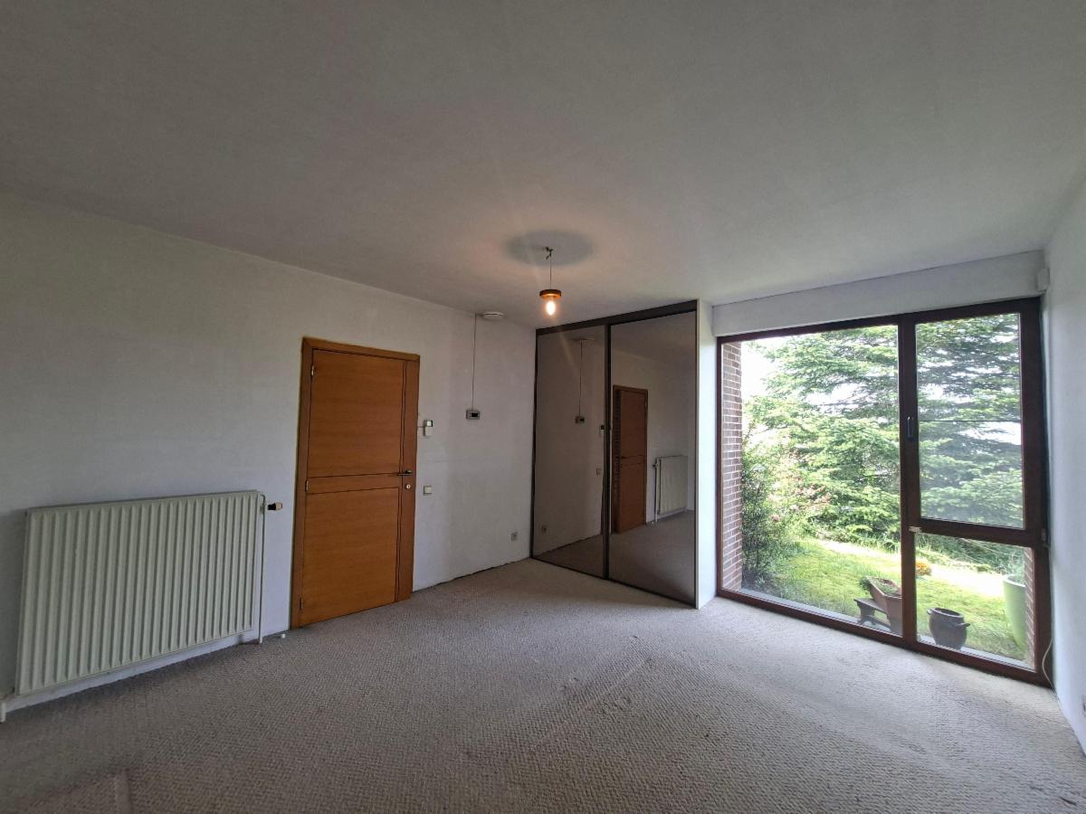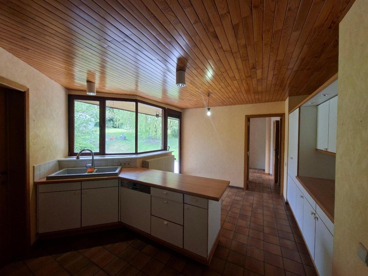 Rez-de-chaussée: Hall d'entrée avec vestiaire, spacieux living avec insert au bois et baie vitrée donnant accès à la terrasse, grande cuisine entièrement équipée (double évier, lave-vaisselle, micro-ondes, four), une salle de bain avec baignoire, une chambre avec placard, wc individuel, bureau.