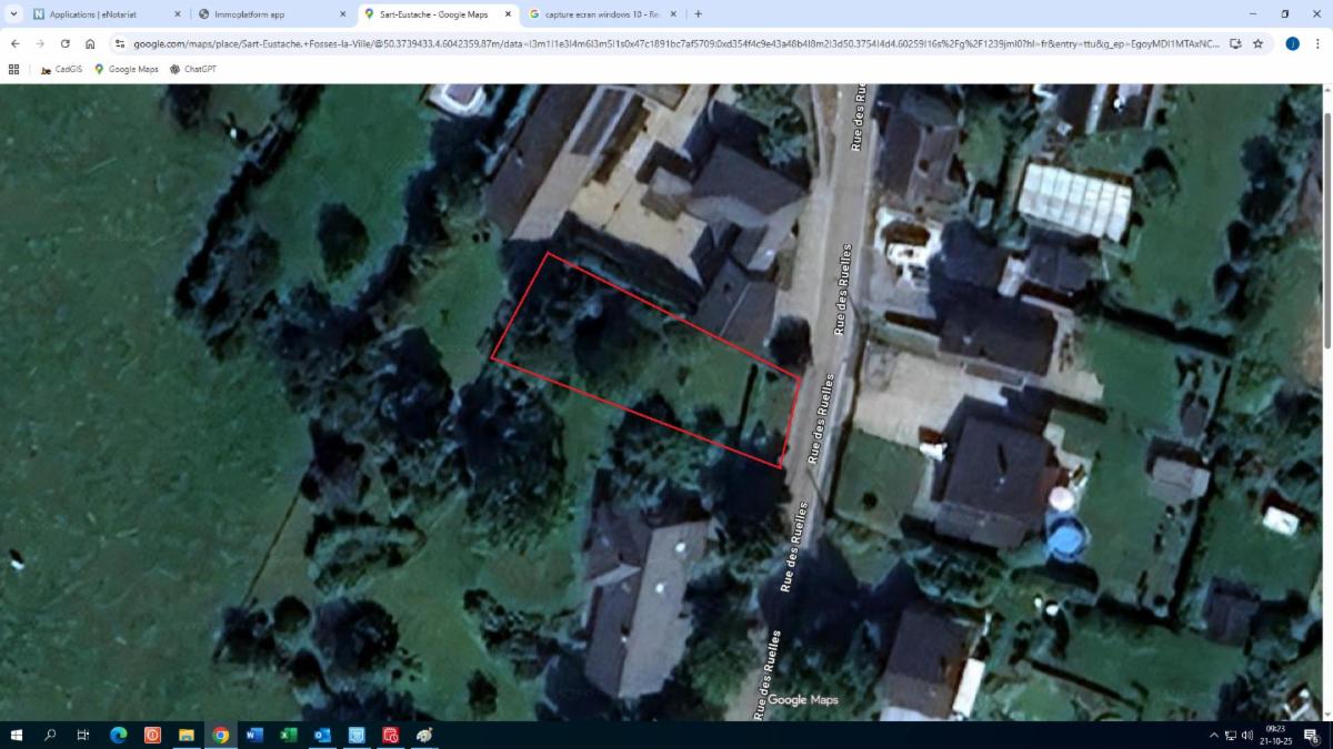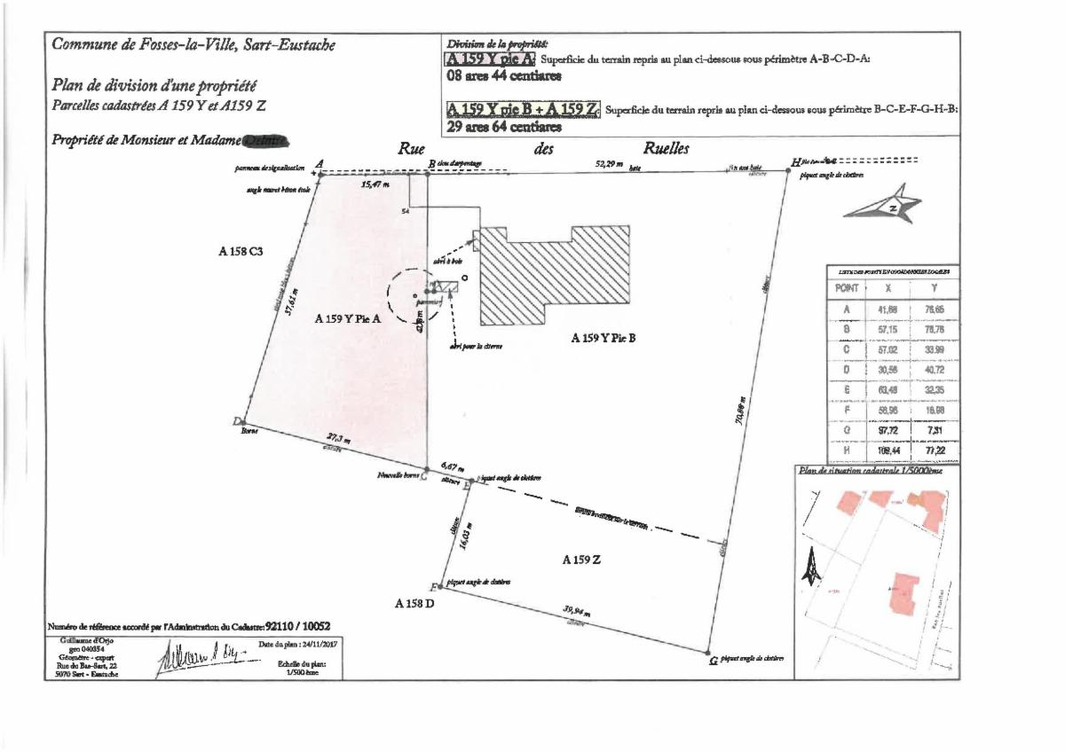 Terrain entouré d'arbres ( pour certains fruitiers) qui jouxte à droite l'école de Sart-Eustache, au fond le jardin de l'école et à gauche le propriétaire vendeur. Celui-ci souhaite privilégier un couple ou une famille qui aime le calme et la nature.