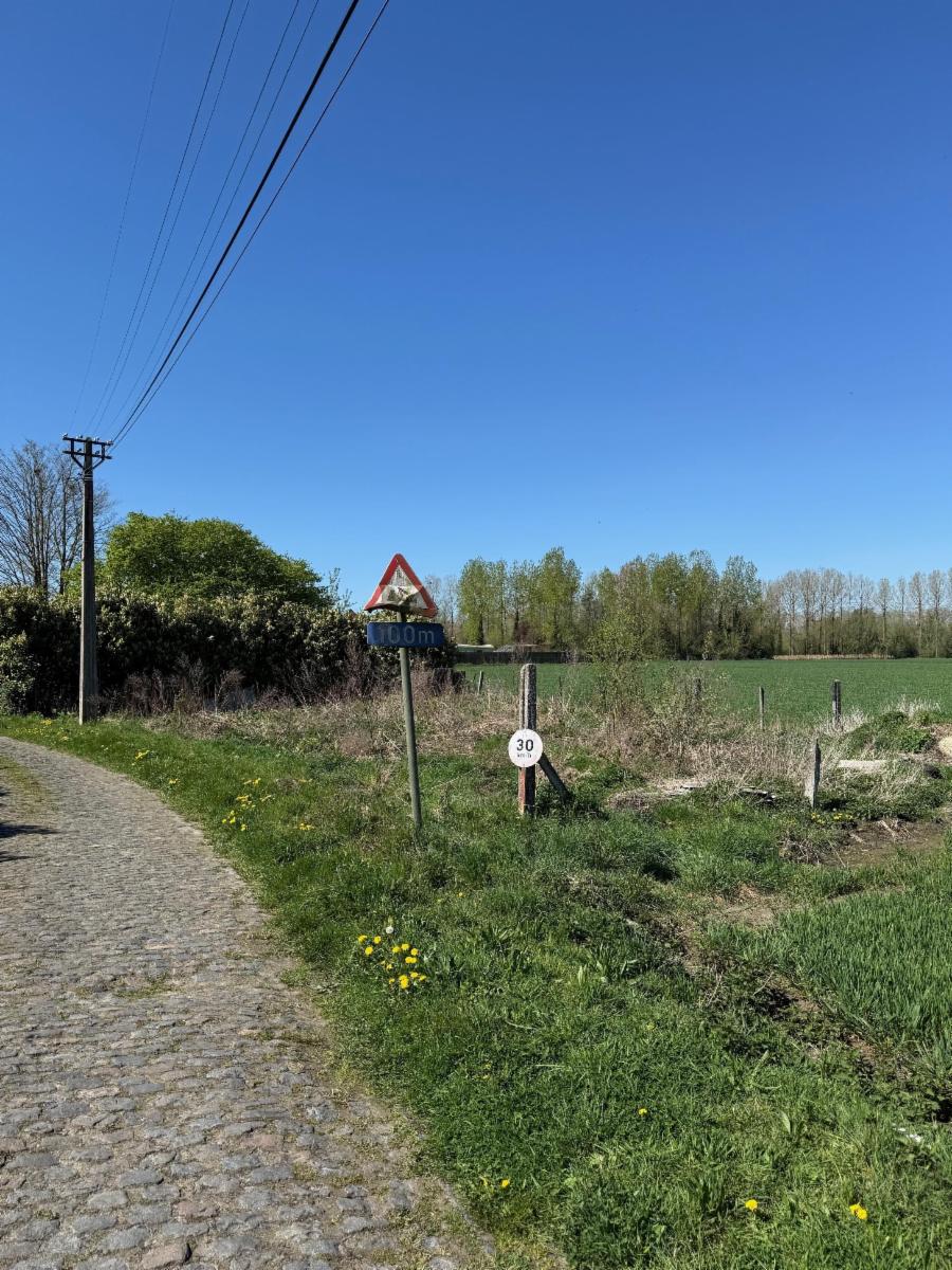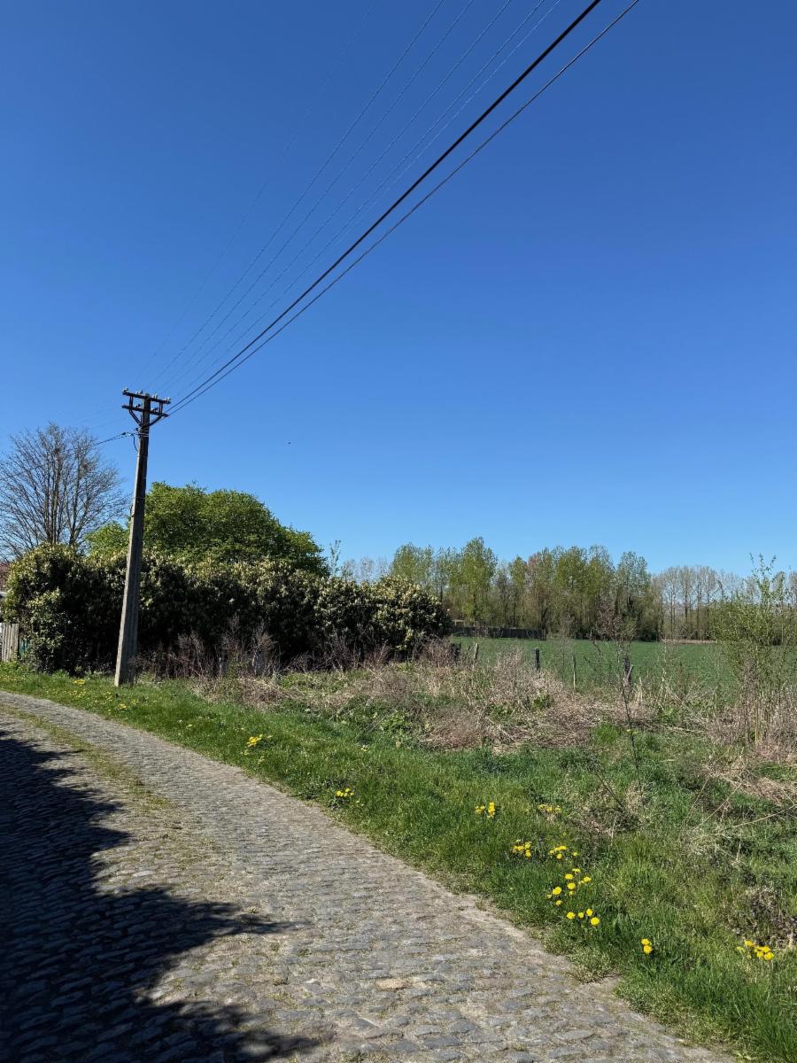 Lieu-dit "Champ des Eaux" (Petit Large) : parcelle de terre d'une contenance de 957m2 (source: cadastre) située pour partie en zone d'habitat (50m à partir de la rue du Large) mais majoritairement en zone agricole au plan de secteur. Présence d'une chape de béton susceptible d'accueillir un véhicule de loisir ou encore de permettre le parking de véhicules. Vendu comme terrain en nature de jardin, tout projet étant de la responsabilité de l'acquéreur. Présence de plaques d'Eternit pouvant contenir de l'amiante (enlèvement à charge et aux risques de l'acquéreur).