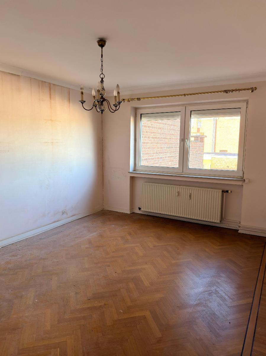 vaste hall entre avec placard - grand séjour avec parquet - belle cuisine -- salle de bains - deux chambres à l'arrière -- cave -- GARAGE fermé (rampe entrée par rue du Vieux Mayeur) - reste dans la cuisine : cuisinière, machine à lessiver et grand frigo - pour VISITER prendre rendez vous au 0494 46 16 33