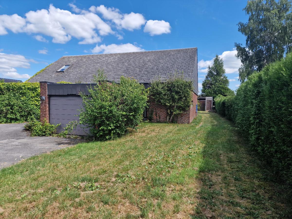 Maison chaleureuse dans un cadre naturel, sur un terrain arboré et ceinturé par une haie dense et persistante comprenant : rez : hall d'entrée avec mezzanine, salon et salle à manger lumineux, cuisine équipée, salle de bain complète avec double vasque, baignoire, douche et wc, chambre parentale avec dressing, buanderie et garage intégré. Etage : 2 chambres confortables - possibilité d'aménager facilement 2 chambre supplémentaires- Poêle à bois central vitré, chauffant efficacement le rez de chaussée - radiateurs électriques haut de gamme à accumulation (pierre naturelle) dans chaque pièces - châssis double vitrage. Parking sécurisé à l'avant pouvant accueillir 3 véhicules et grand hangar à l'arrière du jardin, à restaurer, avec capacité pour 5 voitures. RC 723€